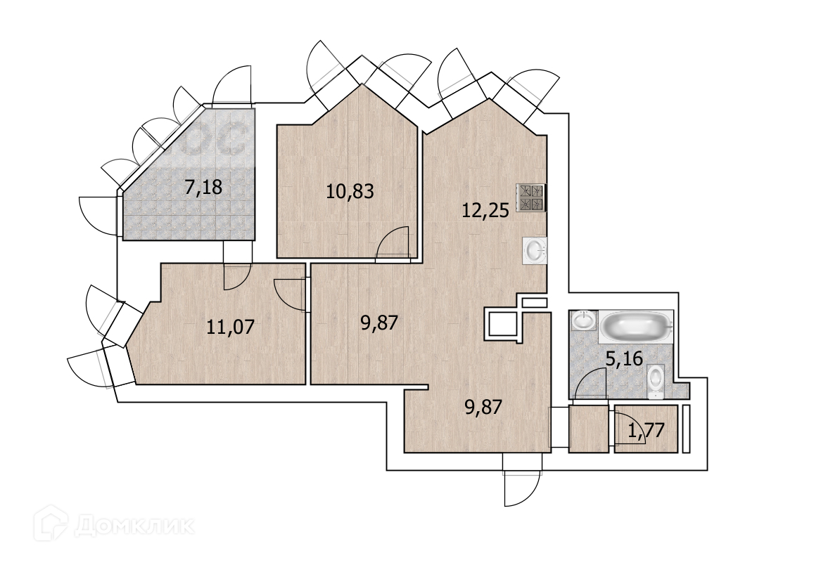 Трёхкомнатная квартира, расположенная по адресу: ул Караидельская, д 60, 12/25 этажность. Общая площадь 68 м2.