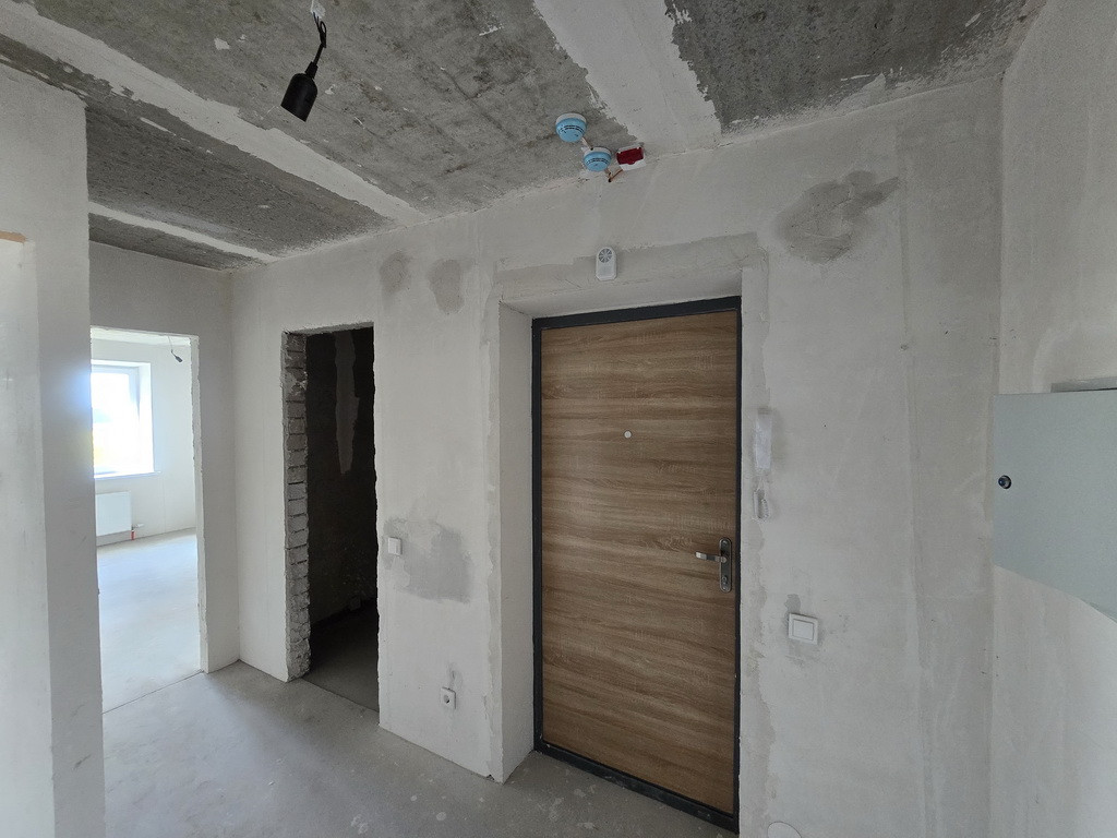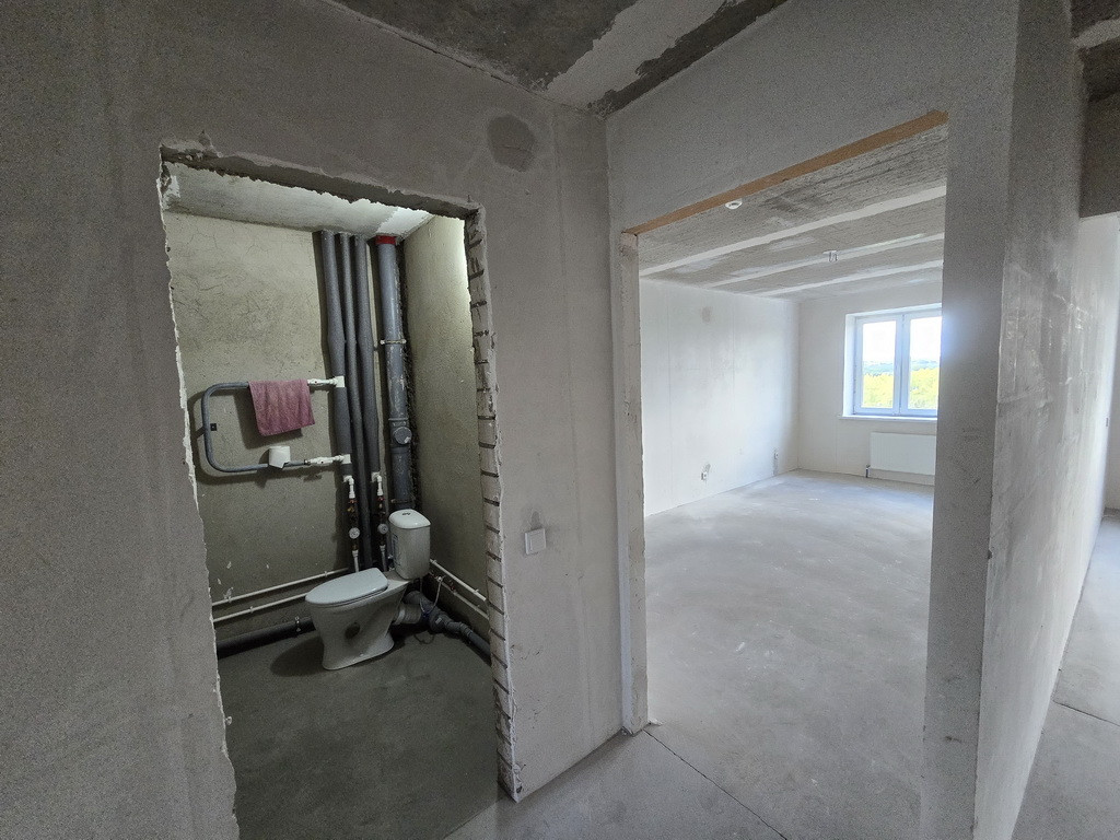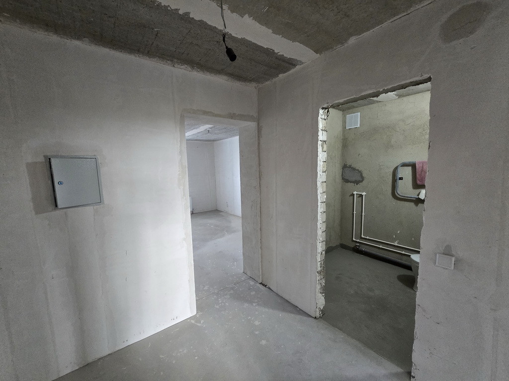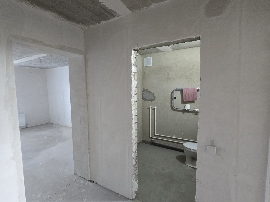 Отделка – пред Чистовая: на полу стяжка + самовыравн. смесь, гипсовая штукатурка и шпатлевка стен – под обои или покраску, проведена разводка электричества с установкой розеток и выключателей, установлены современные радиаторы, подготовлена разводка и уже установлены самые необходимые приборы сантехники, установлены счетчики ХВС и ГВС, элек-во. Важный нюанс: в квартире лучевая разводка отопления и Индивидуальные счетчики Тепла! – это экономия на квартплате.