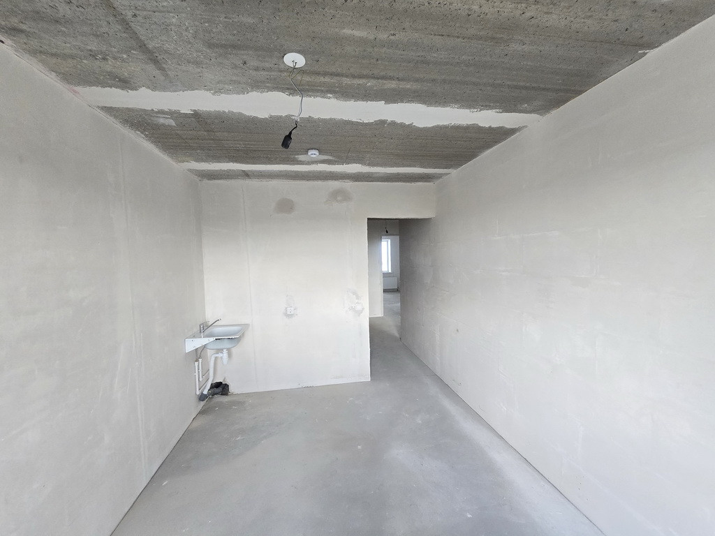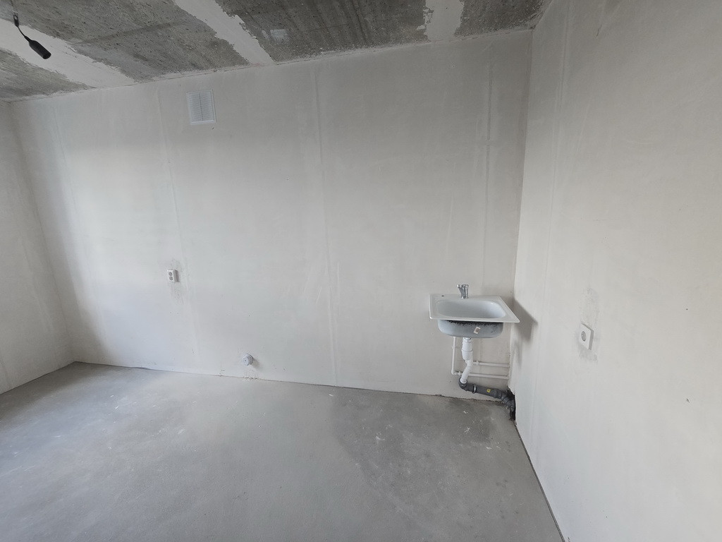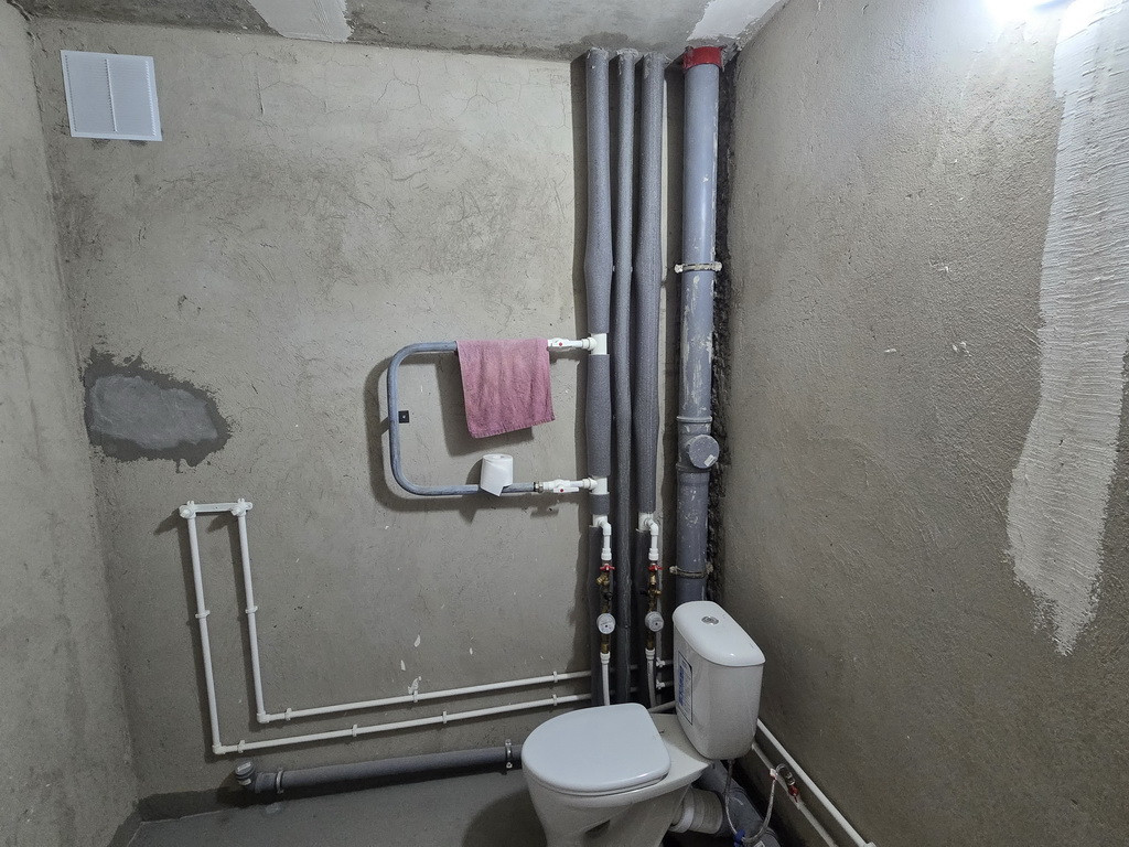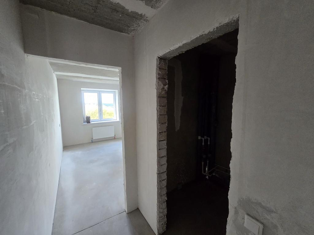 Отделка – пред Чистовая: на полу стяжка + самовыравн. смесь, гипсовая штукатурка и шпатлевка стен – под обои или покраску, проведена разводка электричества с установкой розеток и выключателей, установлены современные радиаторы, подготовлена разводка и уже установлены самые необходимые приборы сантехники, установлены счетчики ХВС и ГВС, элек-во. Важный нюанс: в квартире лучевая разводка отопления и Индивидуальные счетчики Тепла! – это экономия на квартплате.