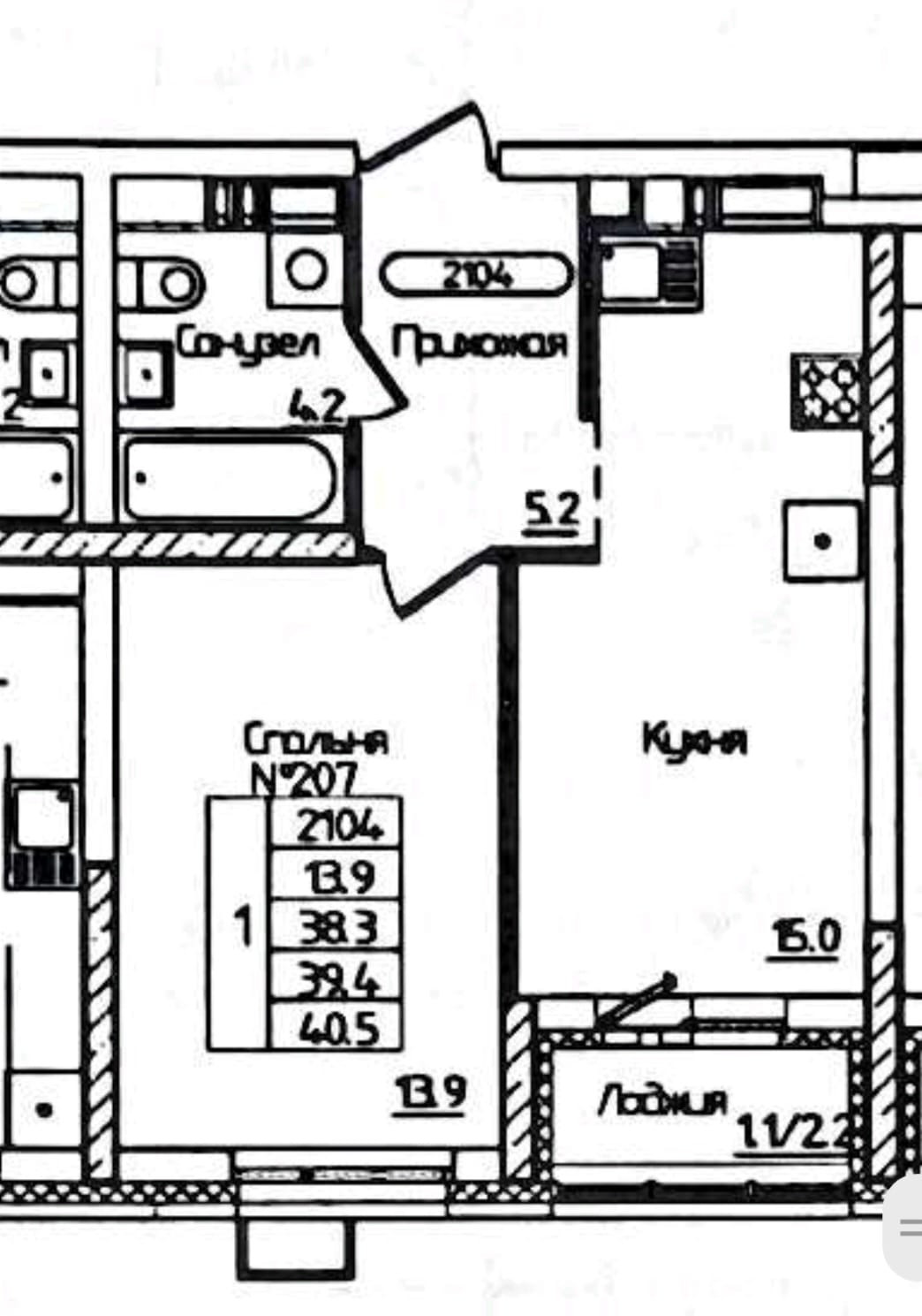 Имеет площадь 40,5 кв.м
