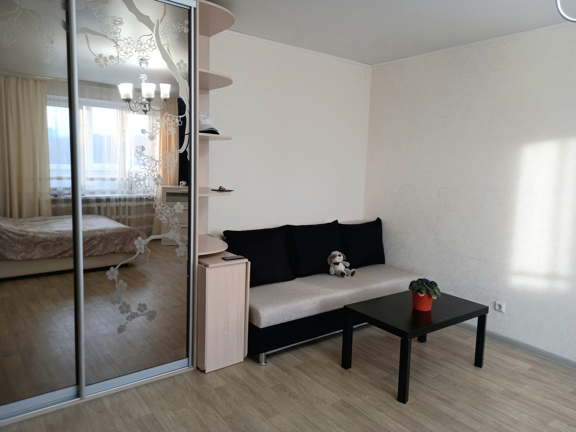 Фото мебели в спальне отличается от фактической (диван, кровать, столик).