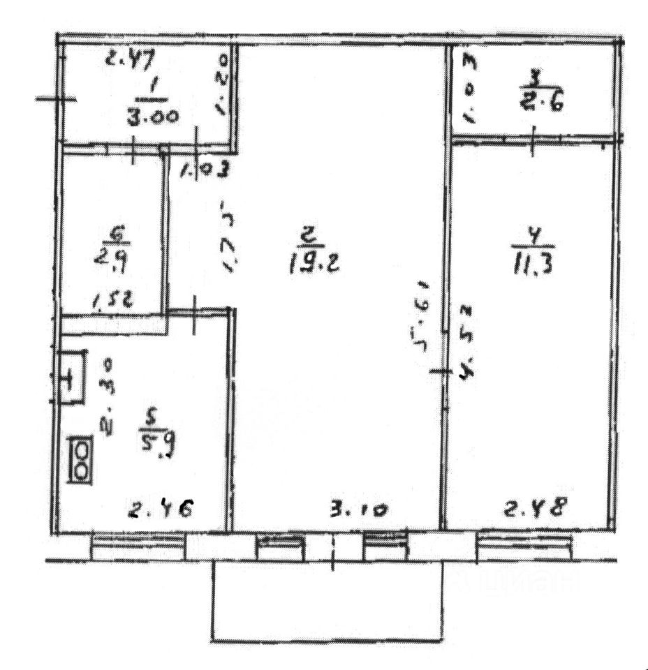 Балкон, лоджия 1 балкон