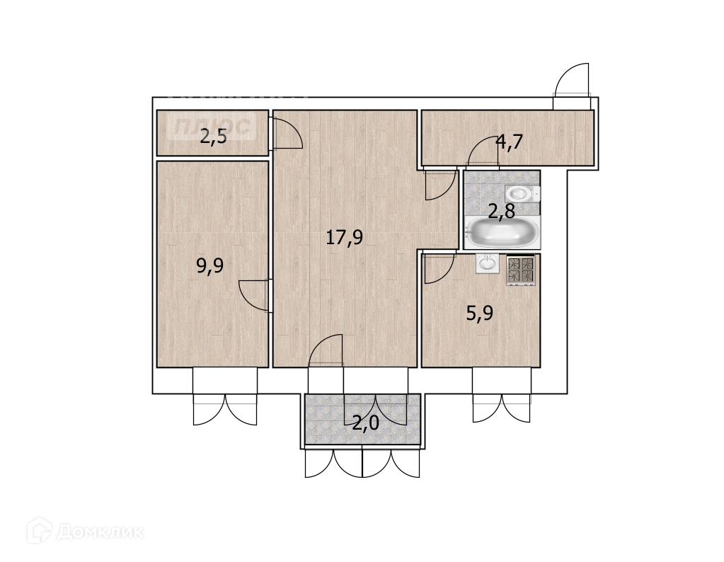 Общая площадь 44.3 м2