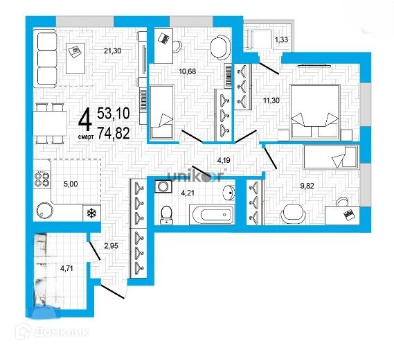 Предлагаем четырех комнатную квартиру в Демском районе в ЖК Эко-город Яркий
