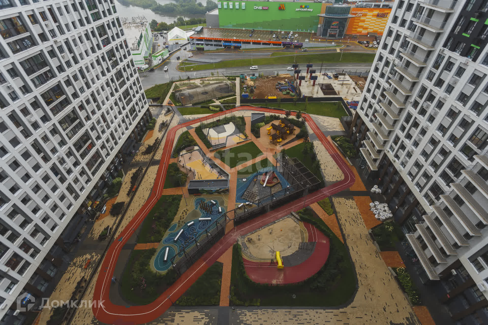 Pядом с домом, строят Гимназию, окна выходят прям на нее, ребенка можно отправлять в школу самостоятельно, так же строят детский сад и поликлинику.