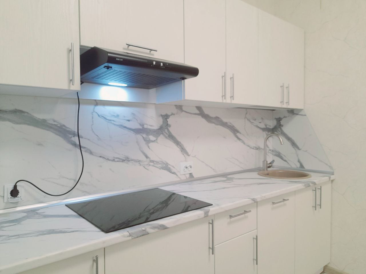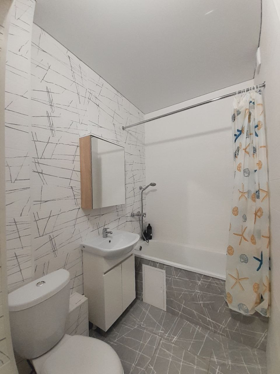 - Кухня, встроенный шкаф, диван, комод, стол и стулья, телевизор, холодильник, стиральная машина, варочная панель, кондиционер.
