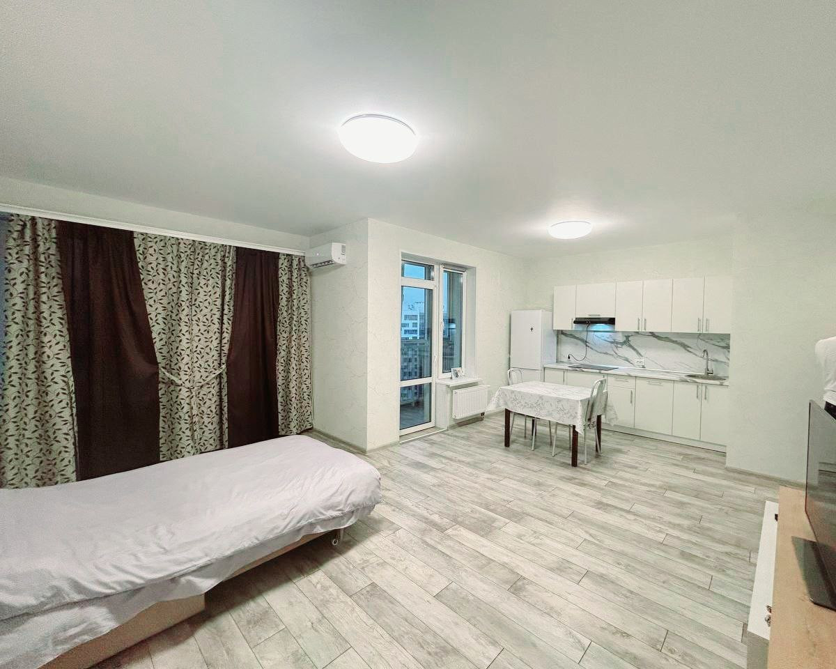 Продается квартира-студия в ЖК НОВАЛЕНД 36м (с лоджией). Окна квартиры с видом на реку и на детскую площадку. В квартире приятный качественный ремонт с использованием хороших материалов.