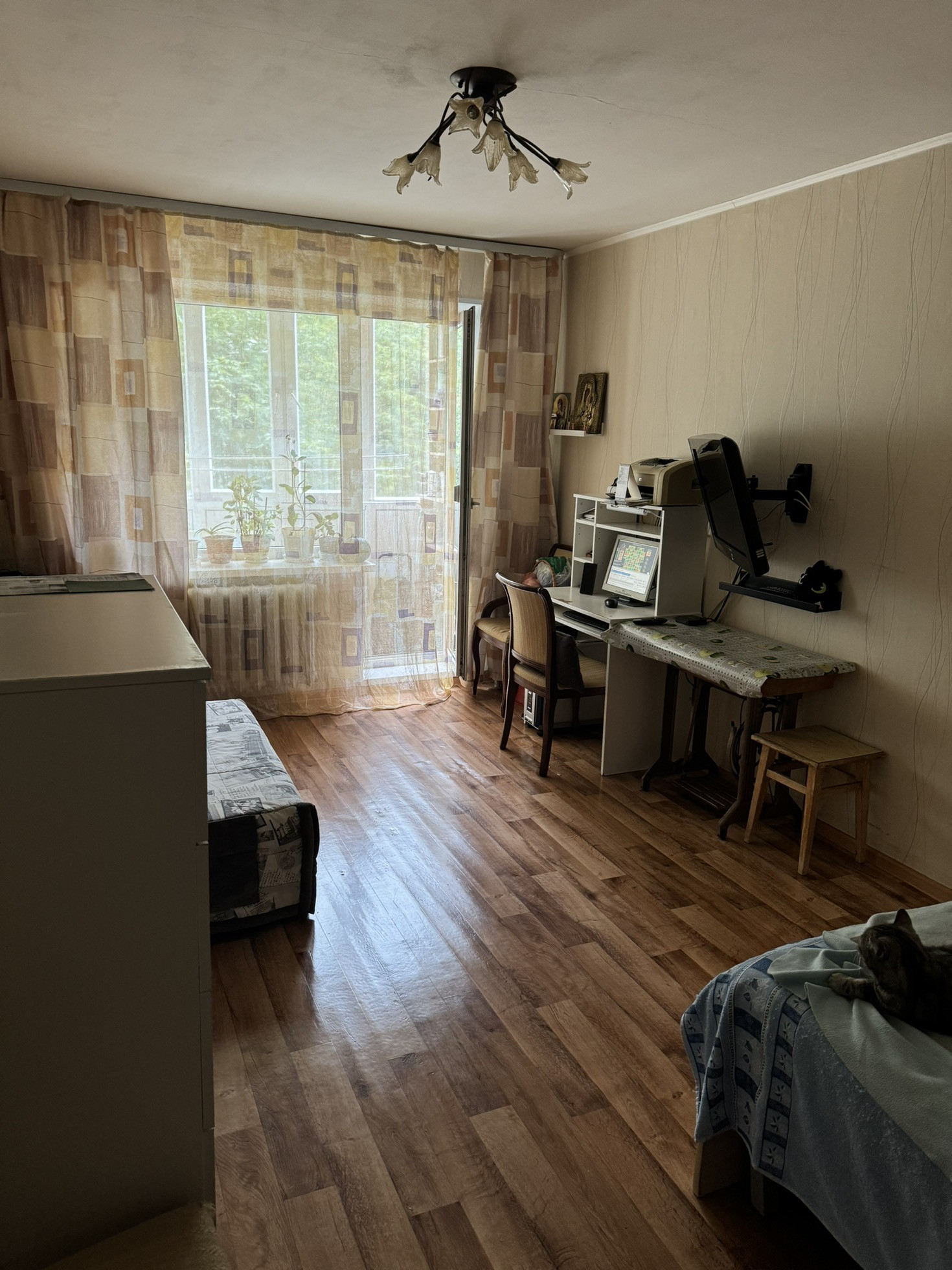 Квартира обладает приятной атмосферой и готова принять новых жильцов. Здесь имеется всё необходимое для комфортного проживания. В квартире всегда достаточно света и воздуха. Очень зеленый двор. Во дворе детский сад, через дорогу 44 гимназия .