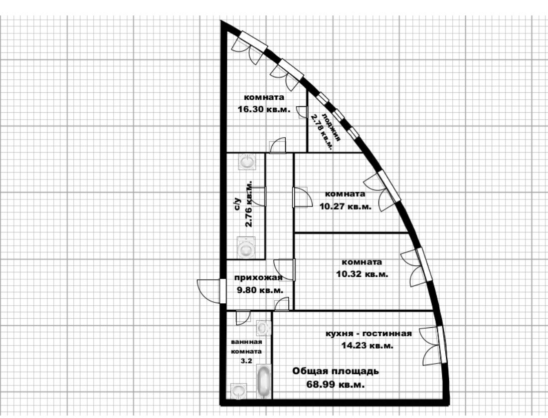 Общая площадь 70 м2