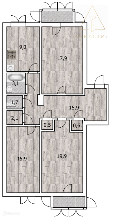 Квартира просторная и уютная с высокими потолками более трех метров. Она имеет три полноценные комнаты. В квартире есть гардеробная комната. Квартира дарит ощущение простора и в ней можно реализовать любую дизайнерскую задумку!