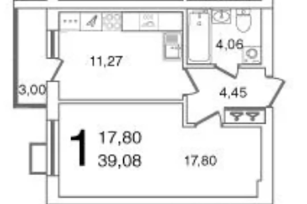 Общая площадь 39.1 м2