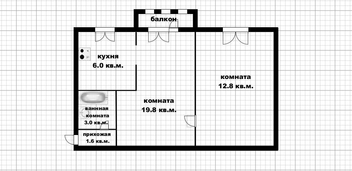 Жилая площадь 32.6 м2