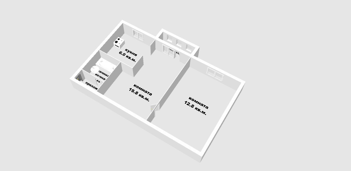 Общая площадь 43.2 м2
