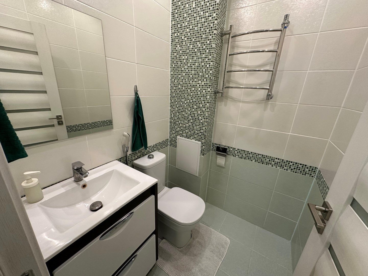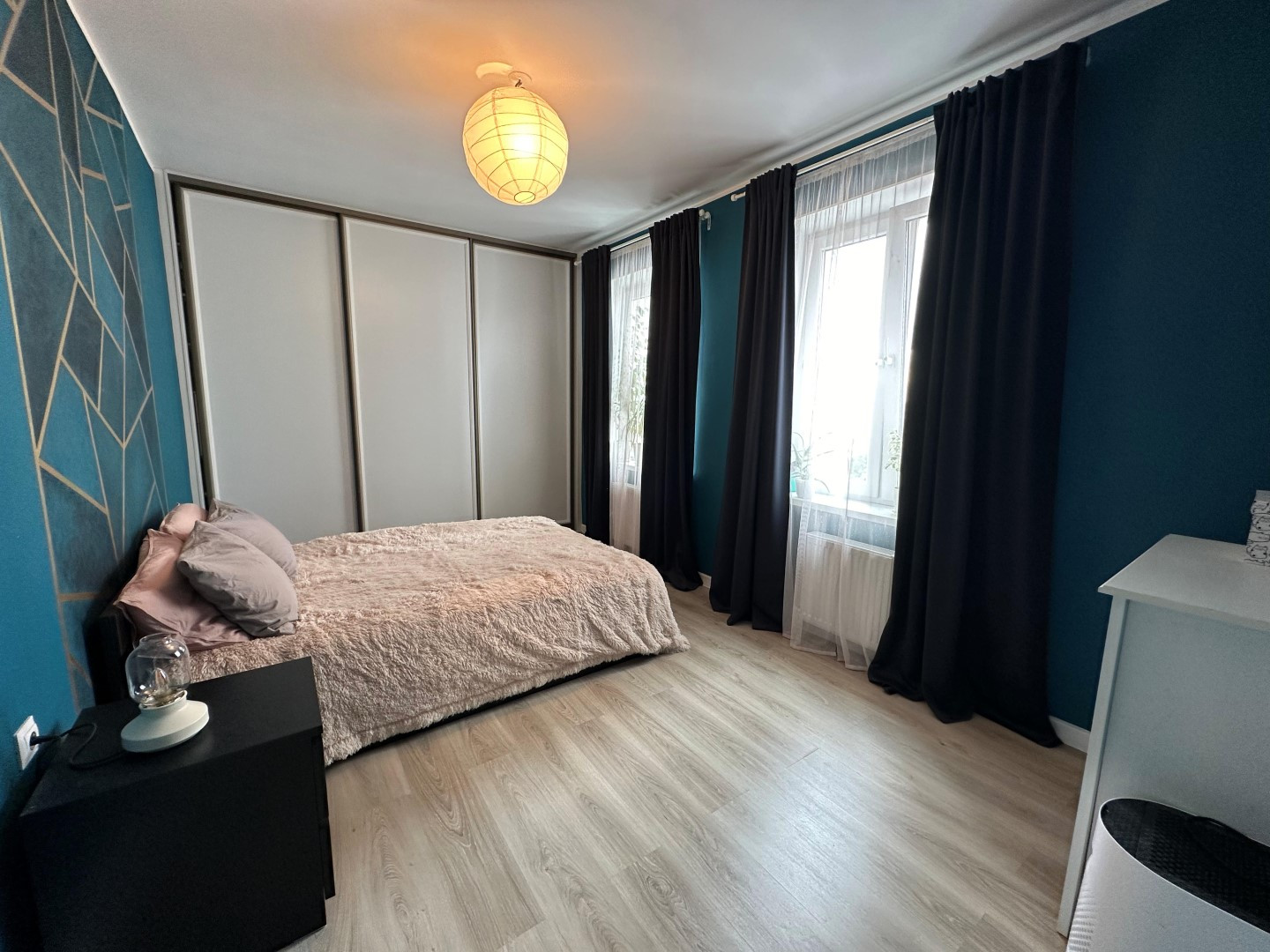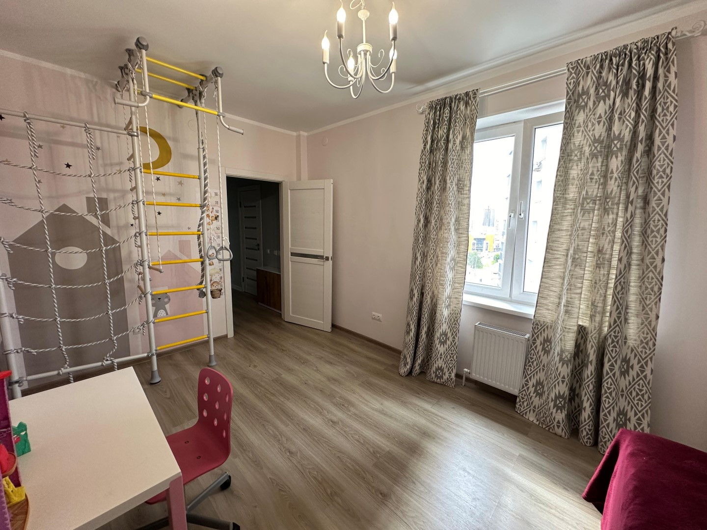 В квартире сделан очень качественный евро ремонт: на полу дорогой ламинат, стены окрашены-в комнатах, выровненные потолки со стильными светильниками, установлены современные межкомнатные двери и металлическая входная дверь с надежными замками, пластиковые премиальные стеклопакеты. Сан. узел отделан Испанской кафельной плиткой, в нем размещены стиральная машинка и водонагреватель, теплый электрический пол, кондиционер.