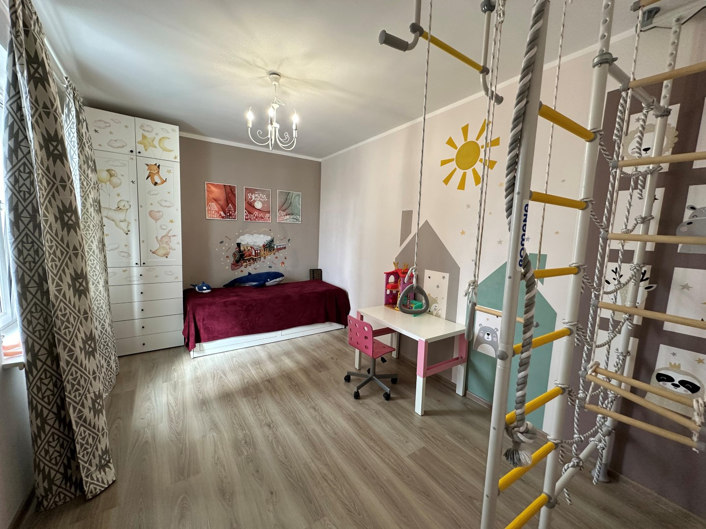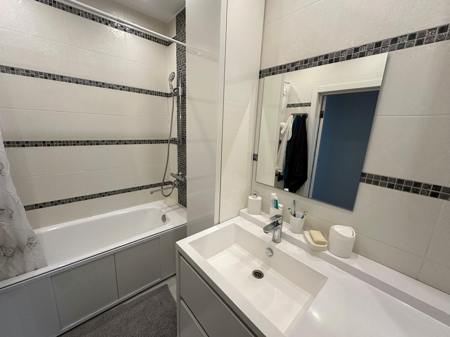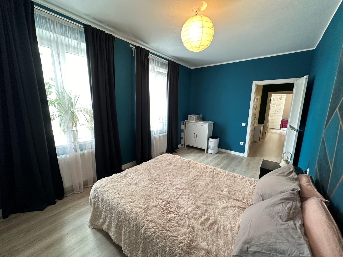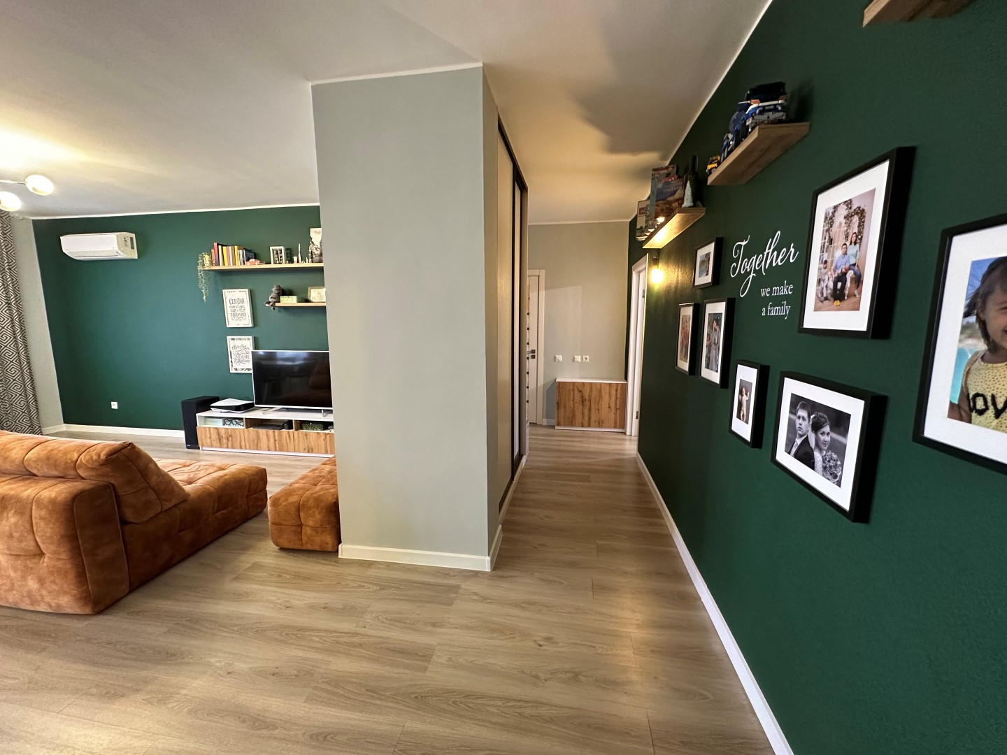 В квартире сделан очень качественный евро ремонт: на полу дорогой ламинат, стены окрашены-в комнатах, выровненные потолки со стильными светильниками, установлены современные межкомнатные двери и металлическая входная дверь с надежными замками, пластиковые премиальные стеклопакеты. Сан. узел отделан Испанской кафельной плиткой, в нем размещены стиральная машинка и водонагреватель, теплый электрический пол, кондиционер.