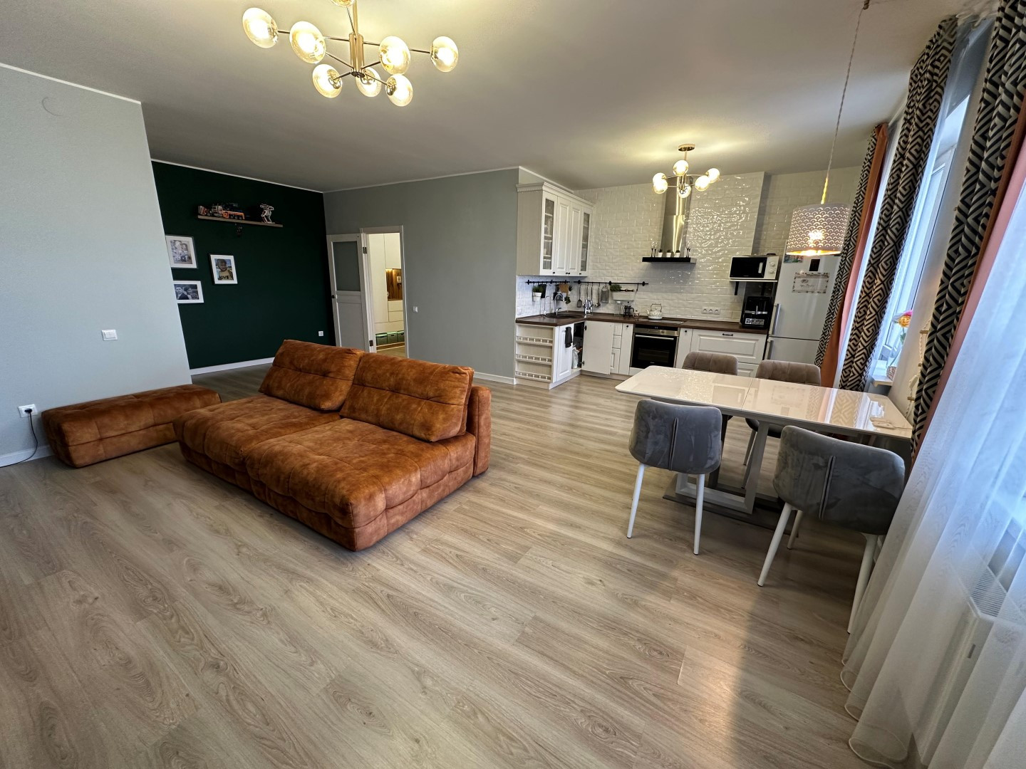 Представляю Вашему вниманию шикарную 3х комнатную квартиру с общей площадью 95/89,2 кв.м, с уютными и изолированными спальными комнатами и с просторной кухней-гостиной 33 кв.м. А кухня - это просто МЕЧТА каждой хозяйки выполнена в светлых тонах и встроенной техникой Бош.