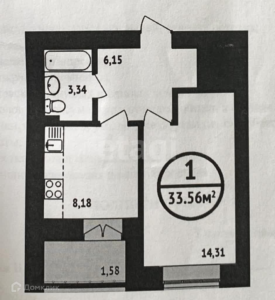 Общая площадь квартиры 34 кв.м.