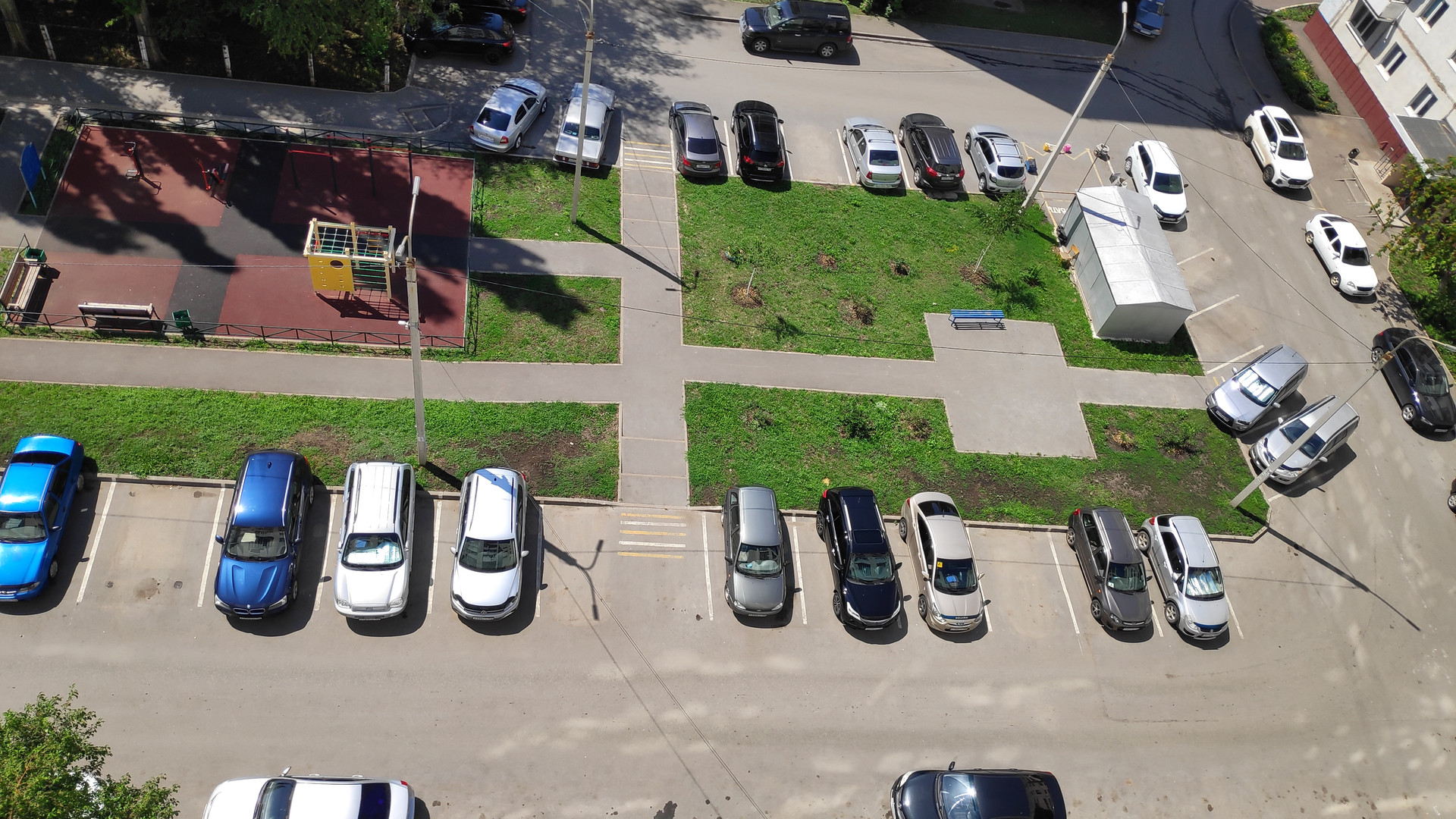 Большая парковка возле дома.
