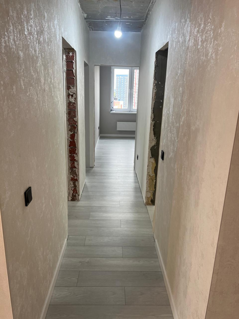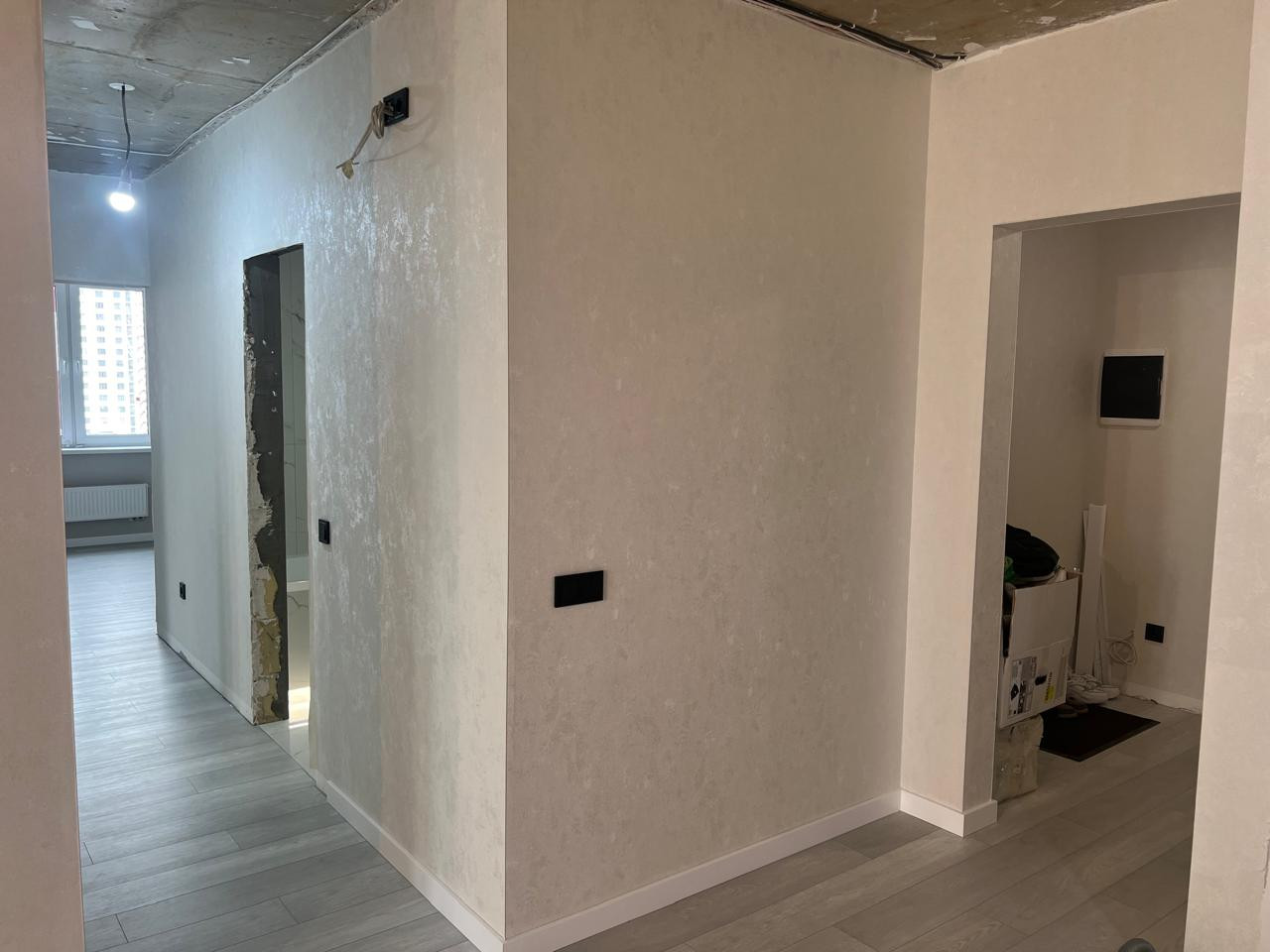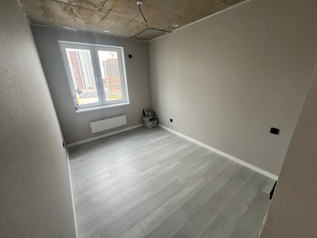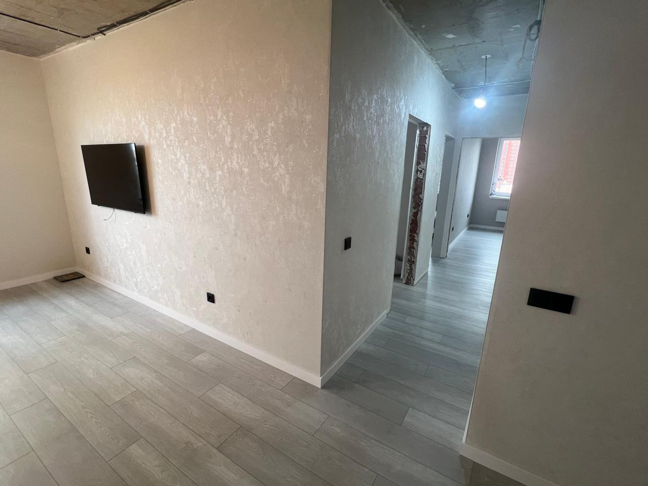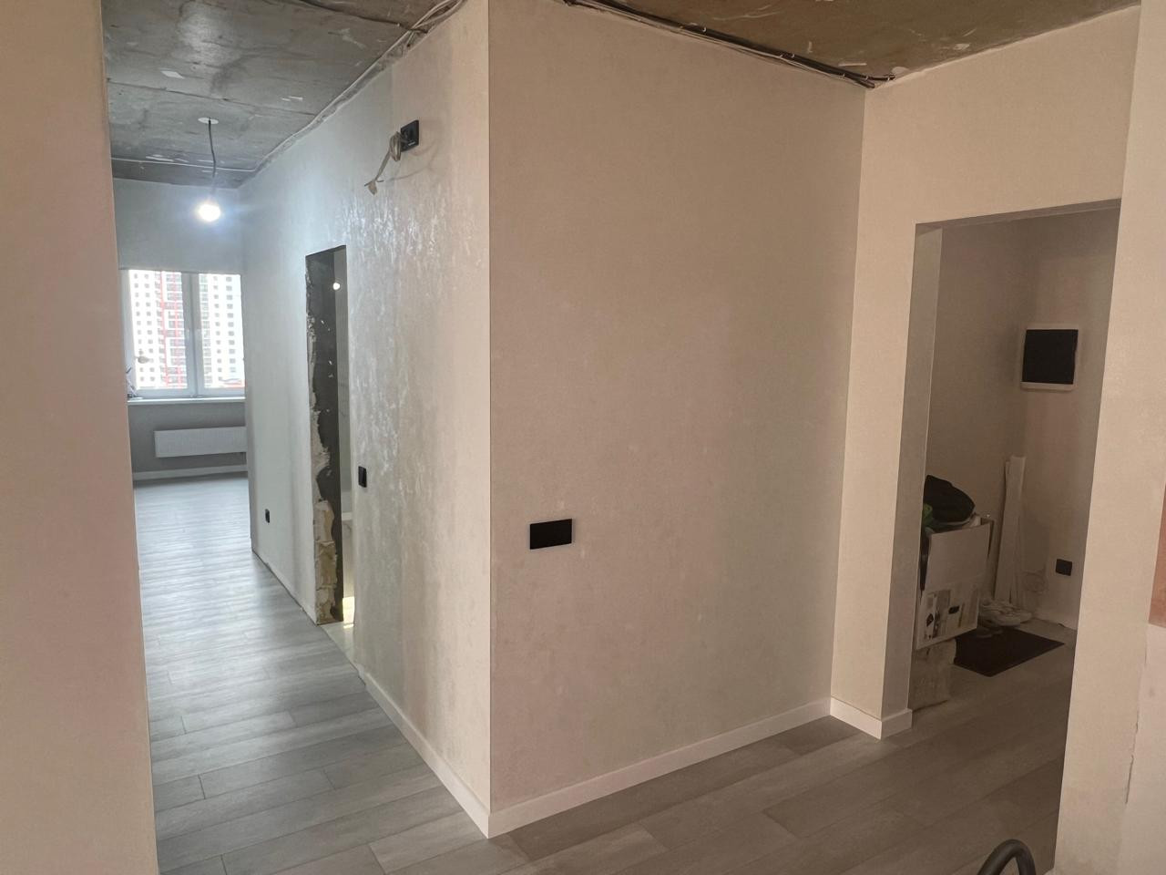 B квартиpe сдeлан кaчeствeнный eвро рeмoнт : пол квapц винил ,в санузлax и балконe кеpaмoгранит ,стены обои светлых тонов , современные подоконники и откосы ,полностью проведена новая электропроводка по всей квартире и установлены новые выключатели и розетки черного тона .