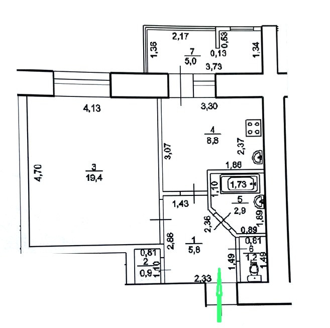 Жилая площадь 19.4 м2