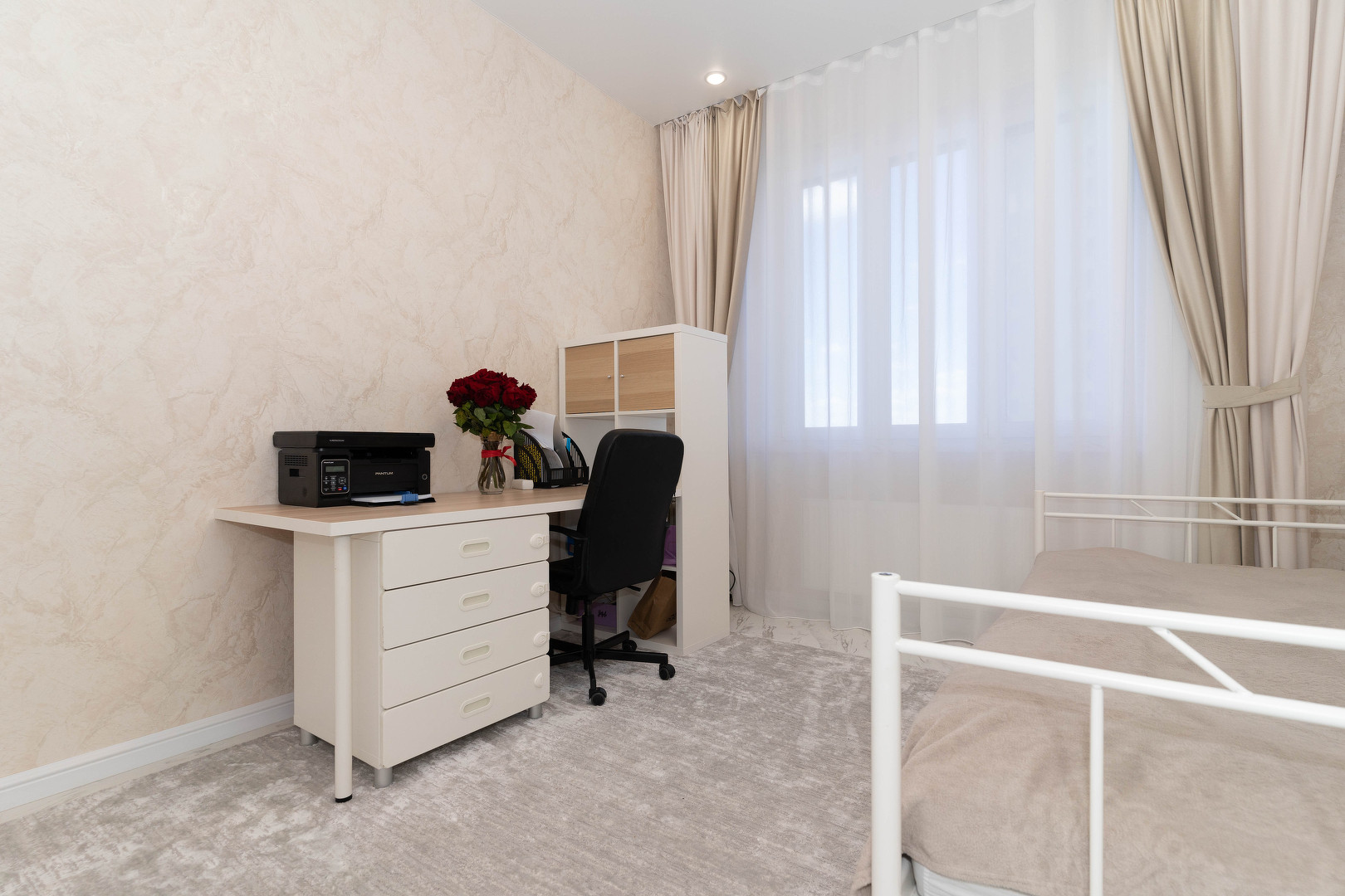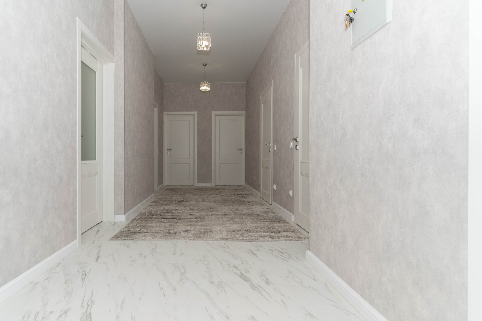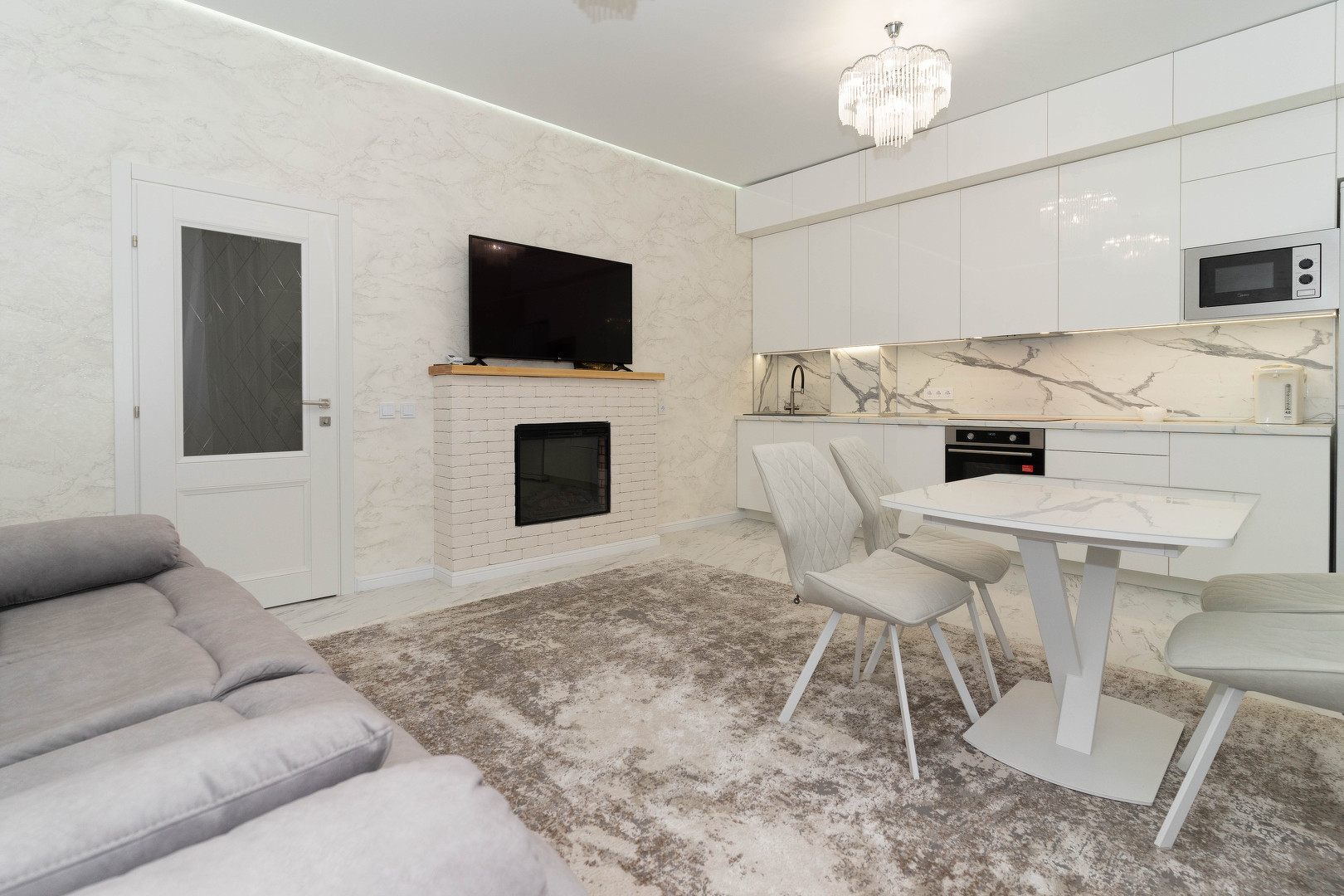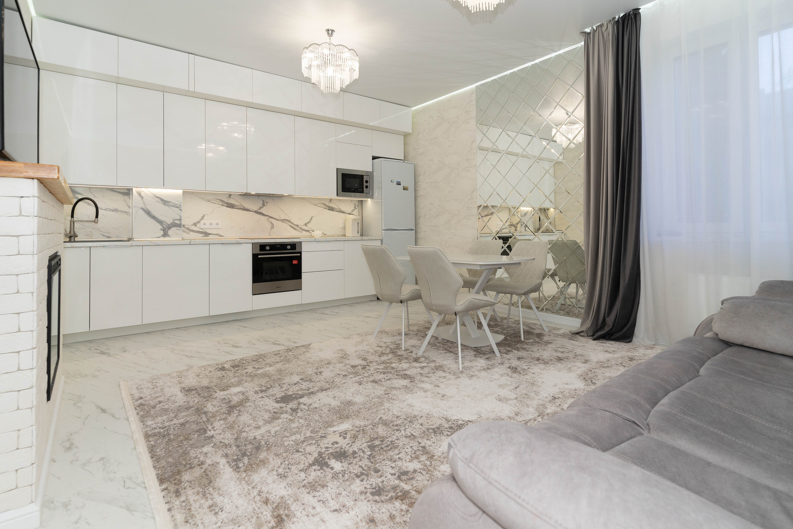 В квартире выполнен качественный ремонт в современном стиле, из светлых материалов. Отличная просторная планировка, её визитная карточка - это великолепная кухня-гостиная 24 кв.м.