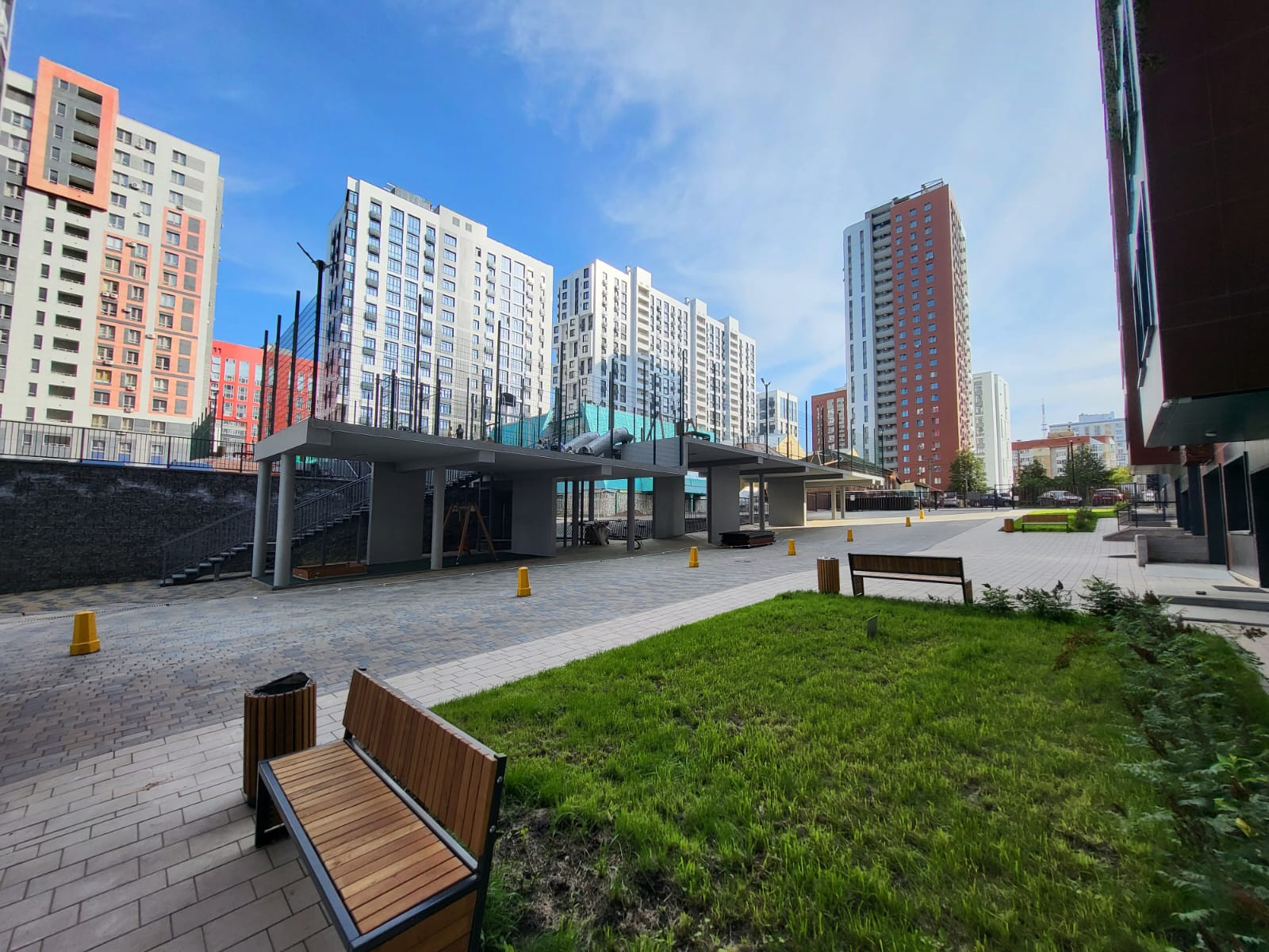 Территория данного комплекса закрытая, имеется подземный паркинг с лифтом, современные двухуровневые детские и спортивные площадки для всех возрастов, лаунж зона для жильцов, бассейн 50 метров, фитнес-центр мирового уровня и многое другое.