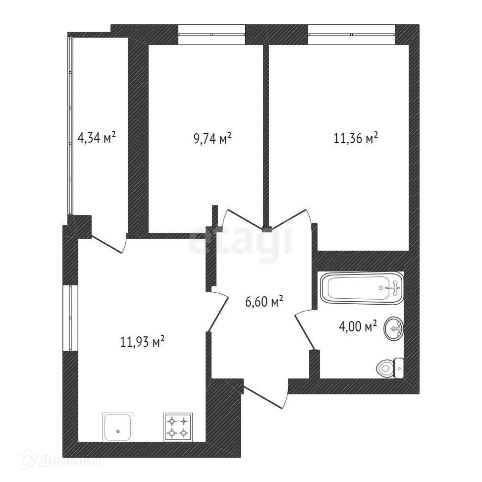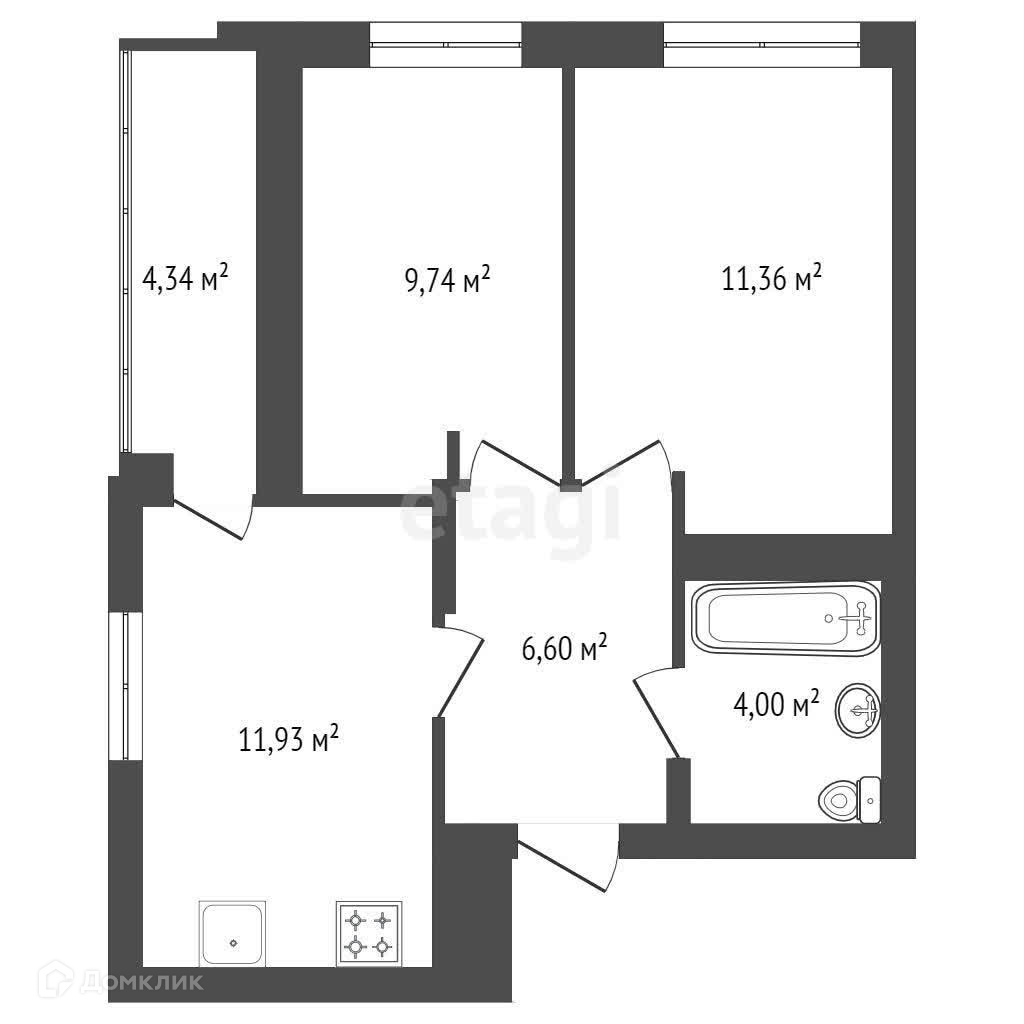 2-комнатная квартира, 43.8 м2, этаж 6 / 23, на продажу в Уфе, улица Уфимское Шоссе, 18/6