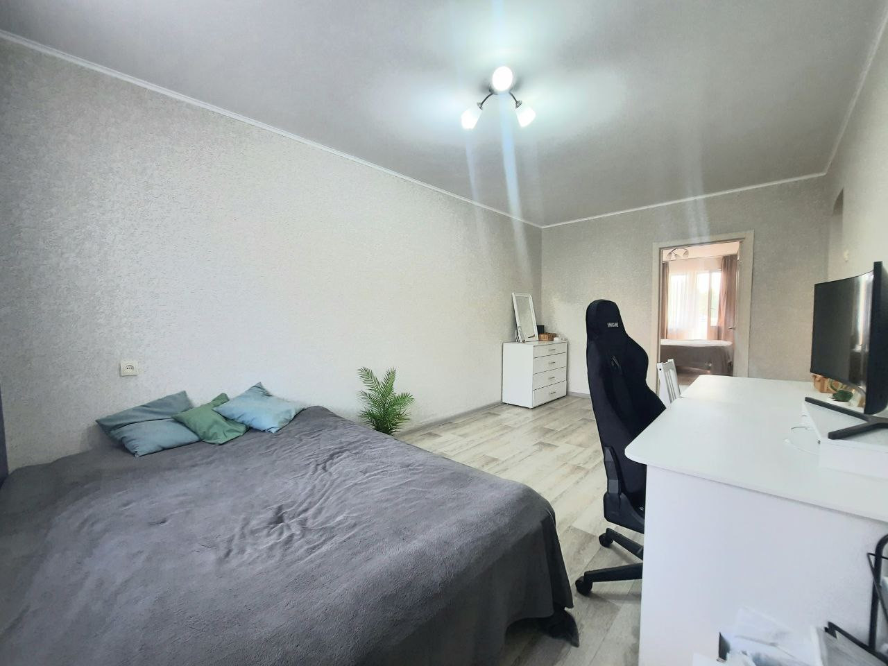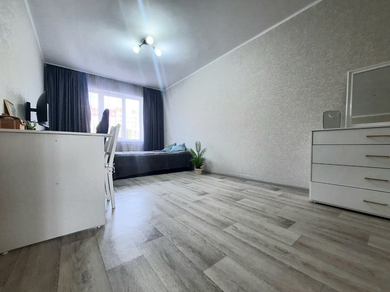 Квартира в отличном состоянии: пластиковые окна, матовые натяжные потолки, полы залиты. В квартире остается вся мебель вплодь до декора.