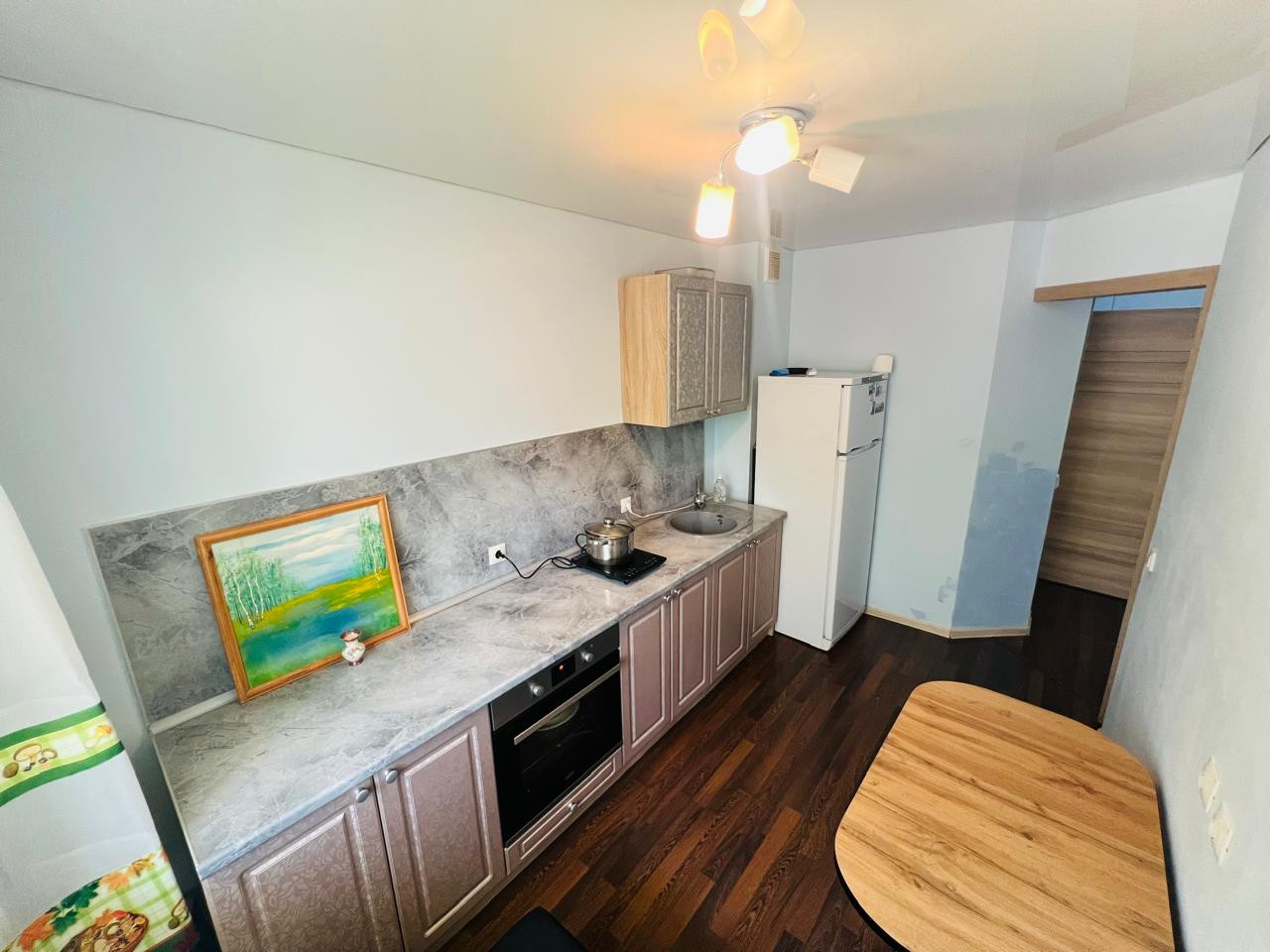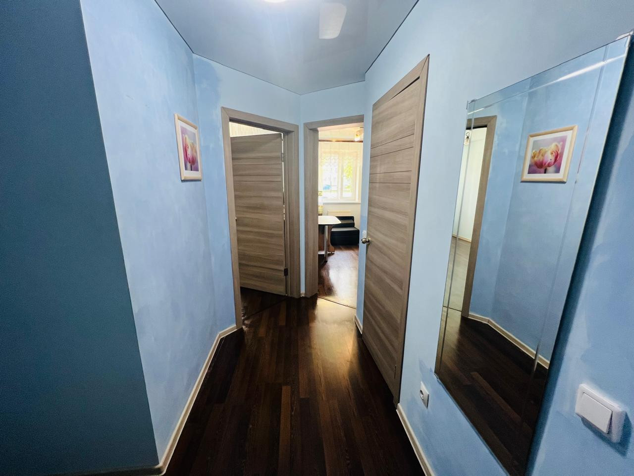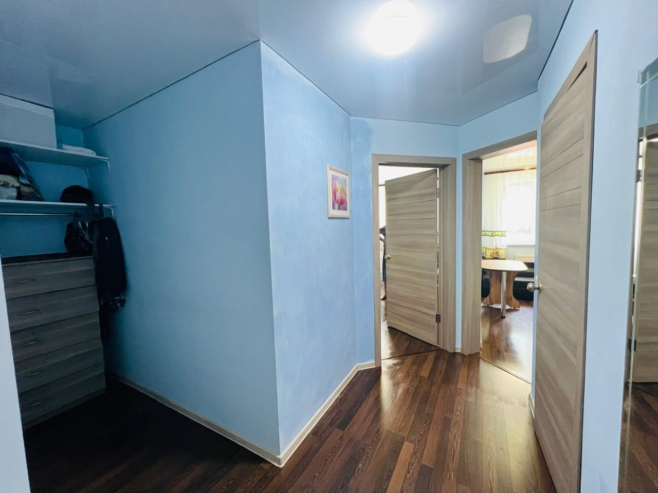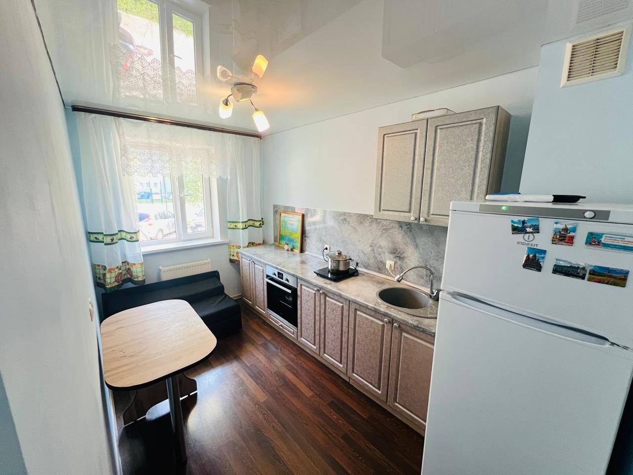 В квартире сделaн eвро рeмoнт : пол лaминaт ,пoтoлки натяжныe ,cтeны покpаcкa , сaнузeл полностью в кaфeле .