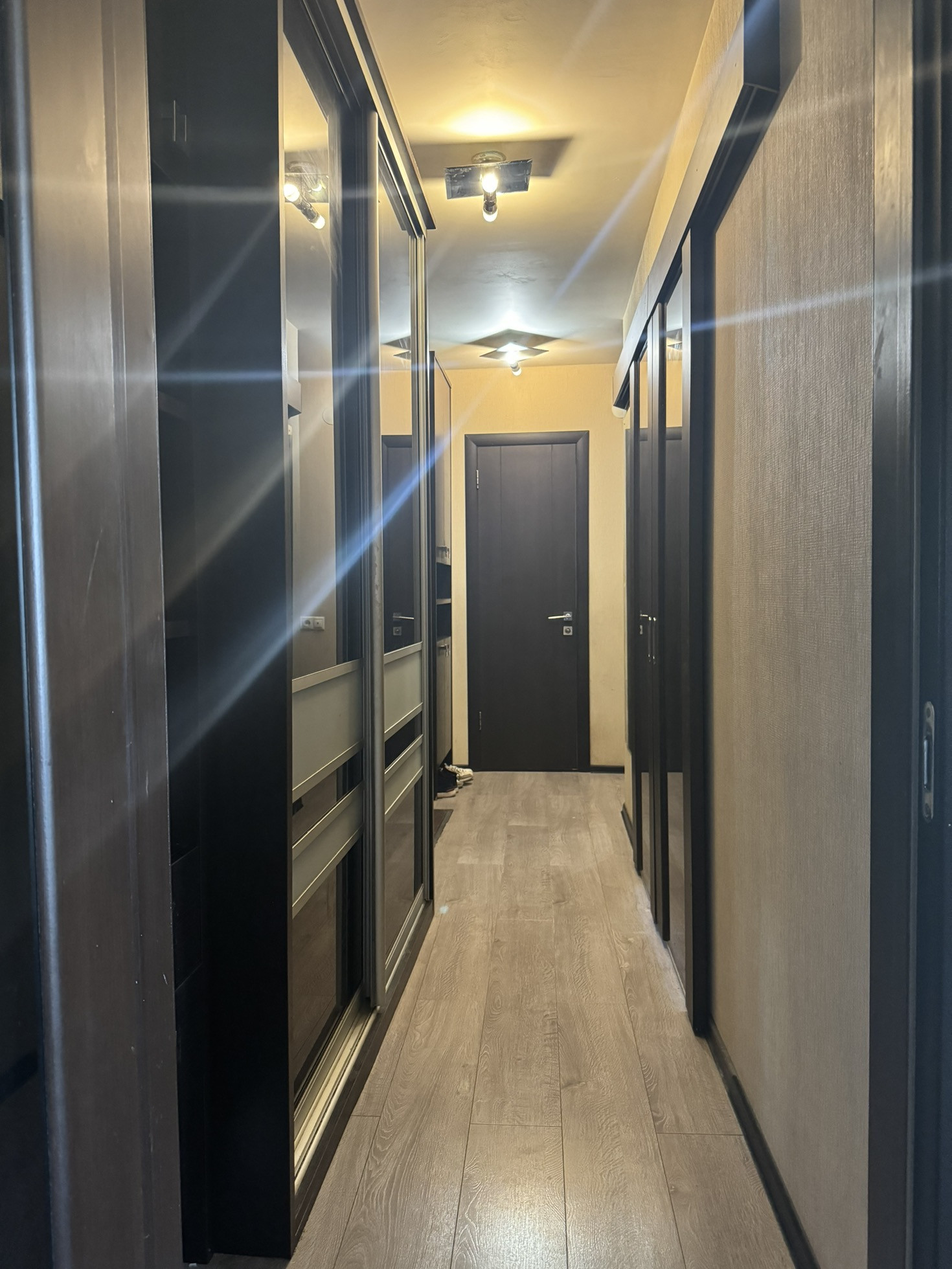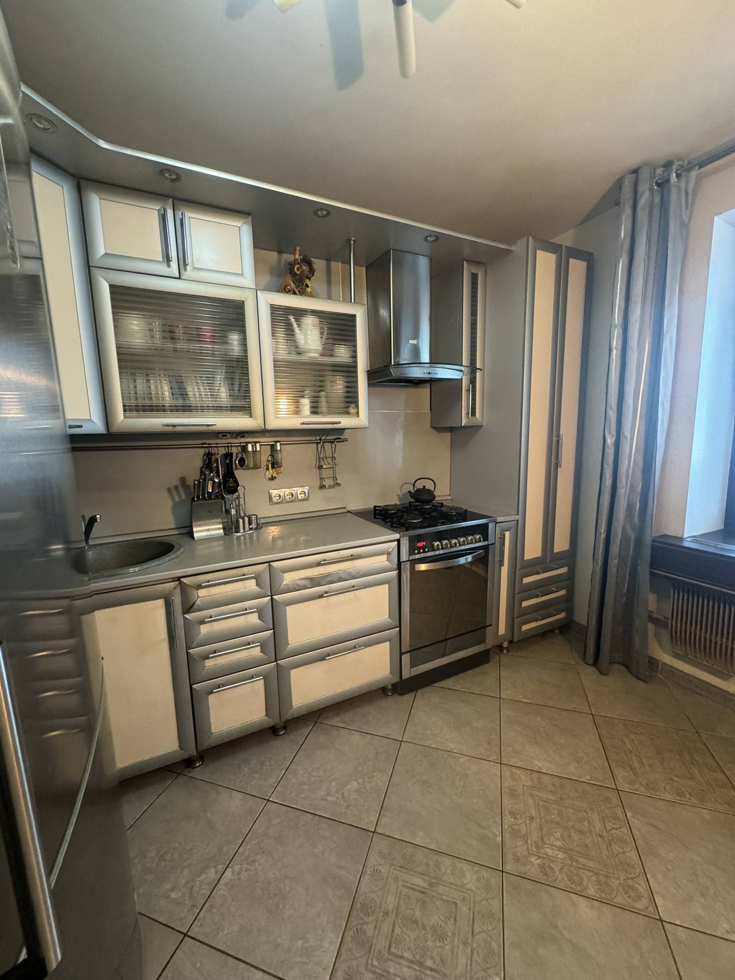В ванной и санузле кафель, душевая кабина, недавно была замена полотенцесушителя, в кухне плитка на полу, везде пластиковые окна под дерево, межкомнатные двери, потолок ровный побелен.