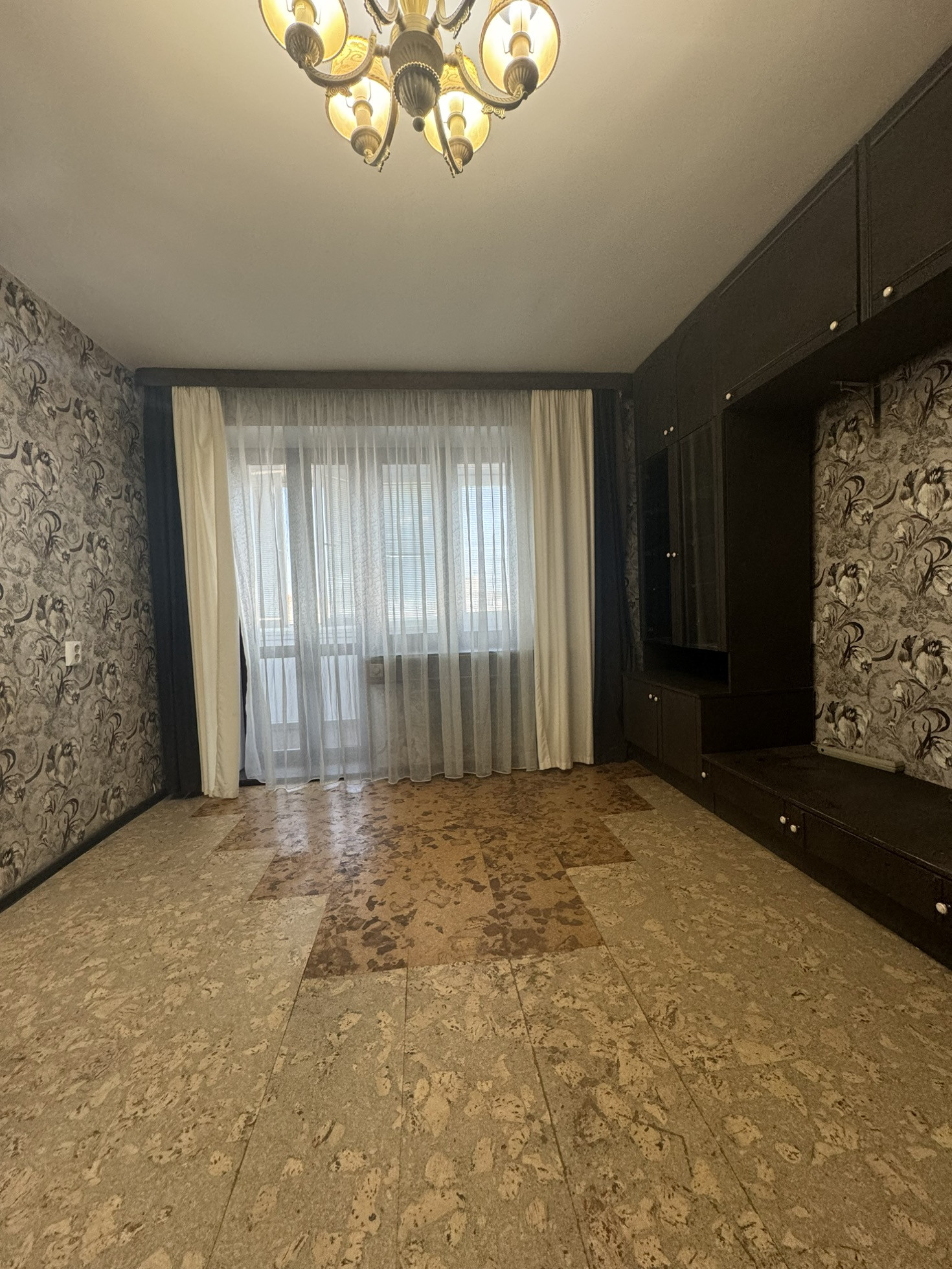 Лоджия на два окна, застеклена. В квартире все остается.