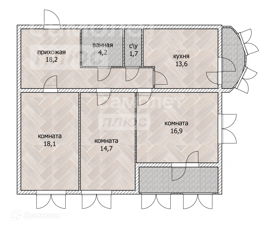 Общая площадь 87.4 м2
