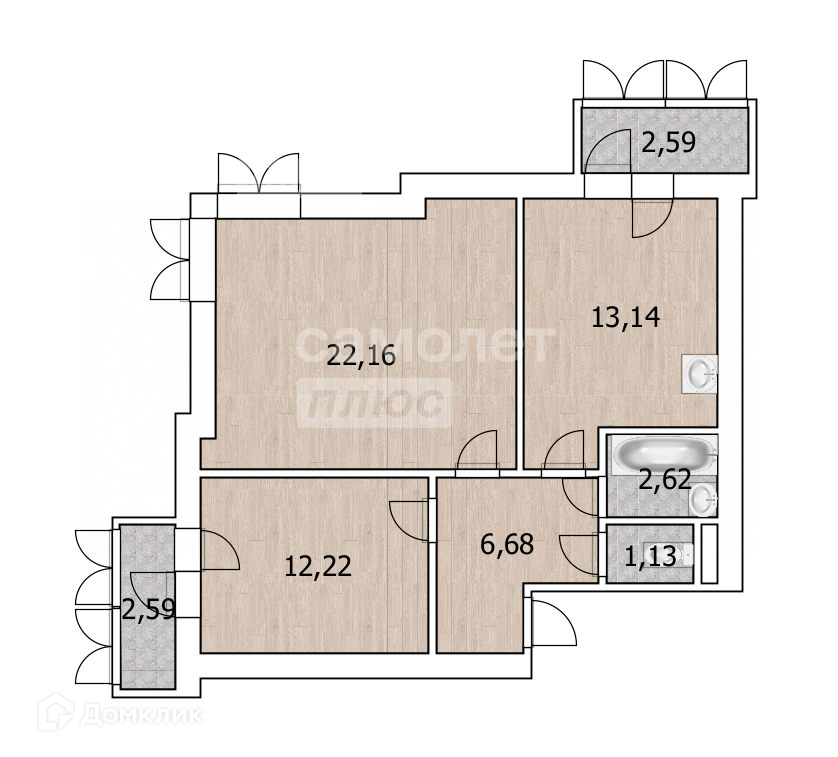 Общая площадь 57.8 м2