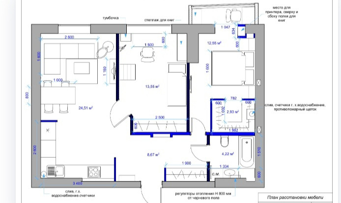 Жилая площадь 43 м2