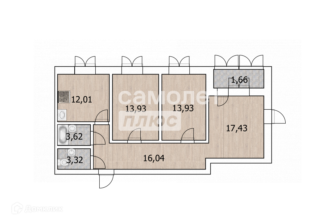 две симметричные комнаты одинаковой квадратуры - по 13,93 м2