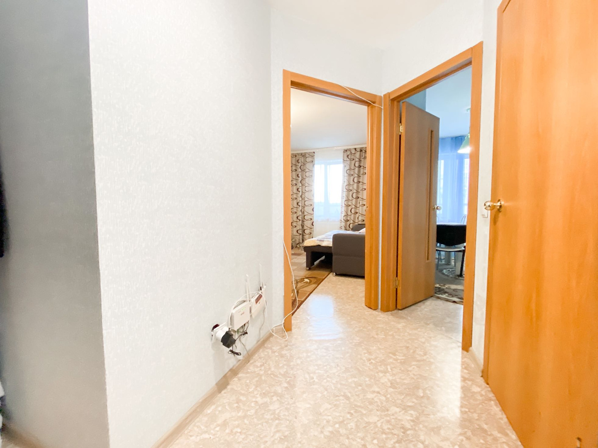 В коридоре ниша для шкафа, просторная кухня и комната.