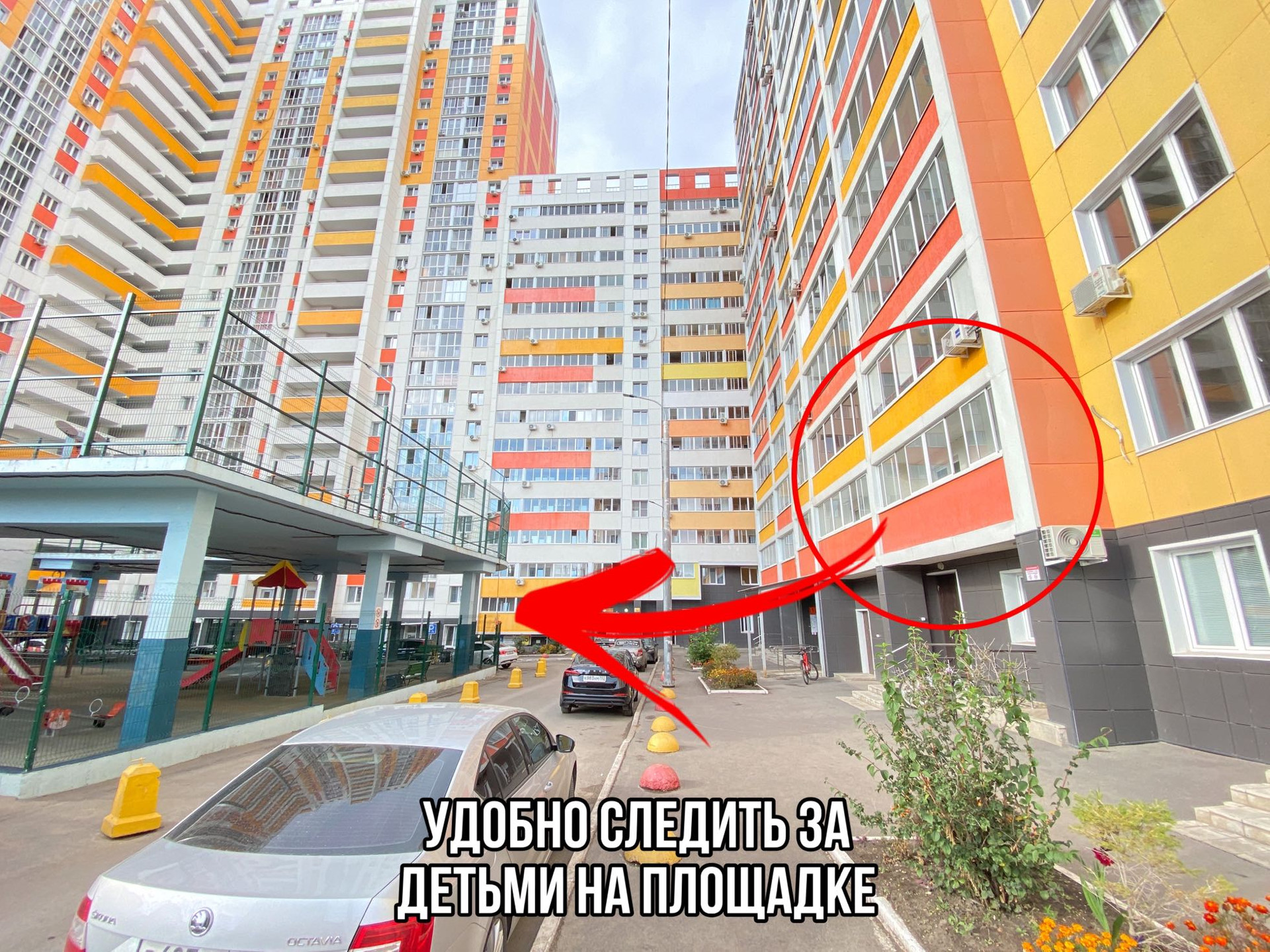 Окна квартиры выходят прямо на закрытую детскую площадку, дети всегда под присмотром!