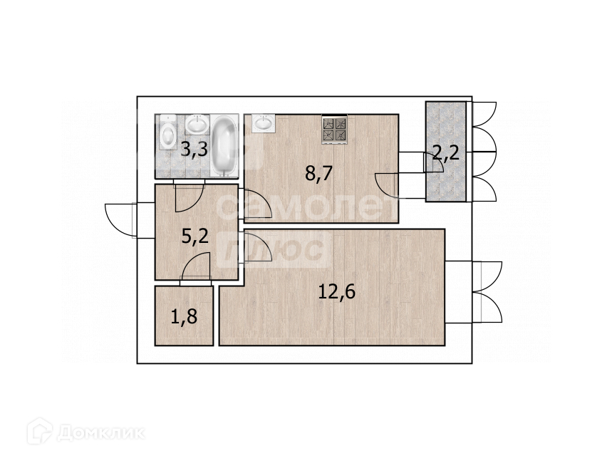 Общая площадь 31.6 м2
