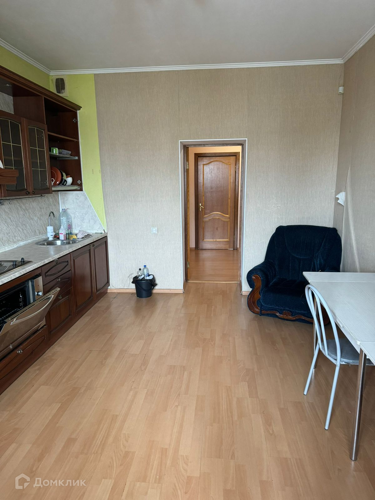 Кухонный гарнитур - натуральный массив, встроенная бытовая техника (варочная поверхность, духовой шкаф, вытяжка).