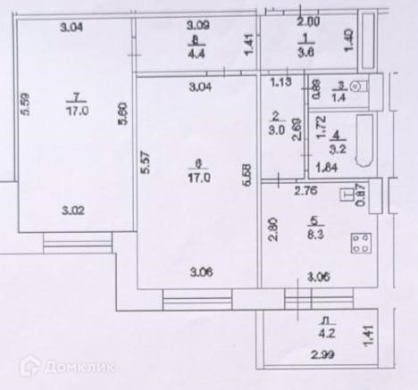Параметры: Общ.пл. 62,1 кв.м.; жил. пл. 34 кв.м.; кухня 8,3 кв.м.; спальня 17 кв.м.; зал 17 кв.м.; прихожая 8 кв.м.