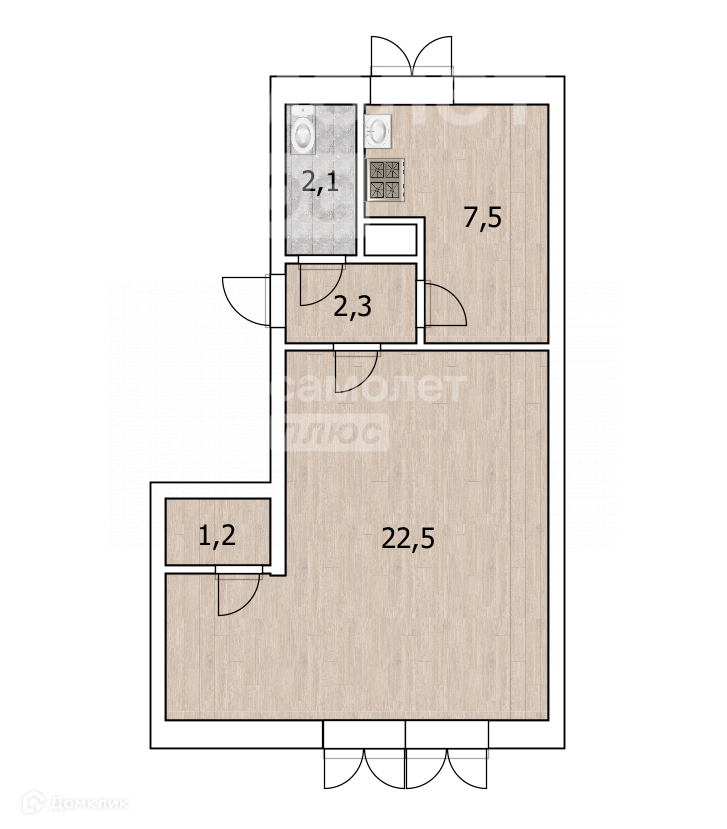 Жилая площадь 22.5 м2