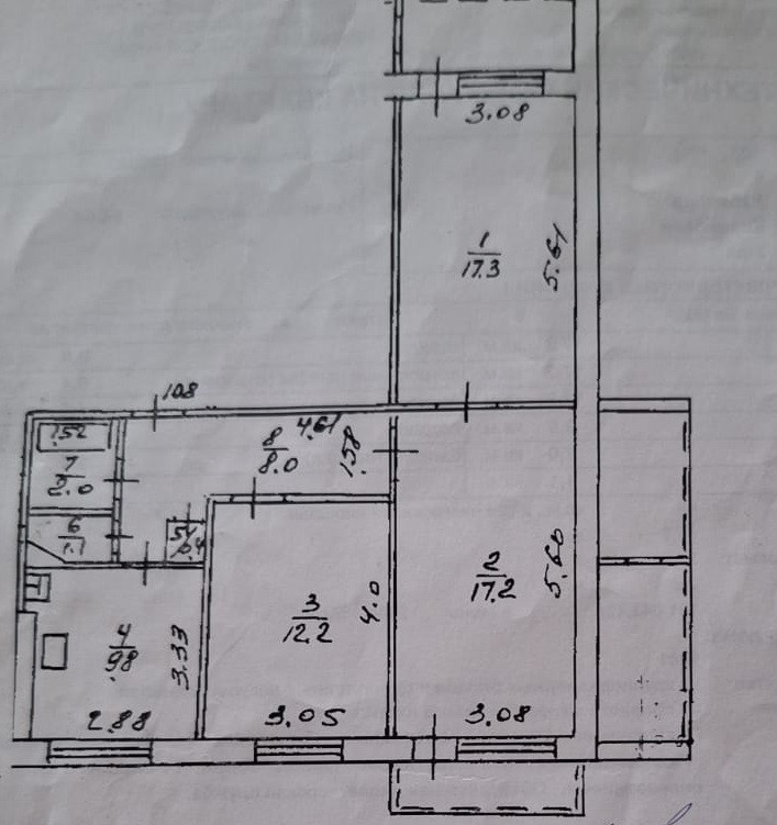 Кoмнаты- 17,2 квм, -17,3 квм, -12 кв.м,