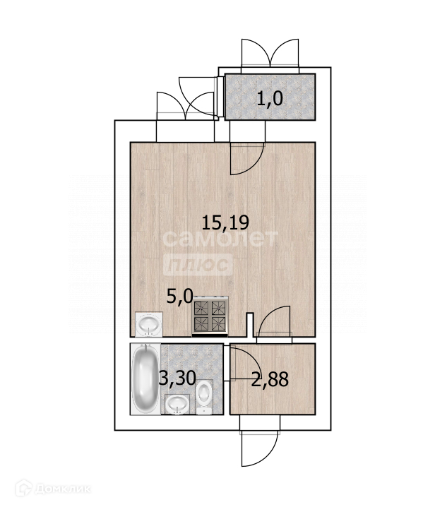 Общая площадь 27.6 м2