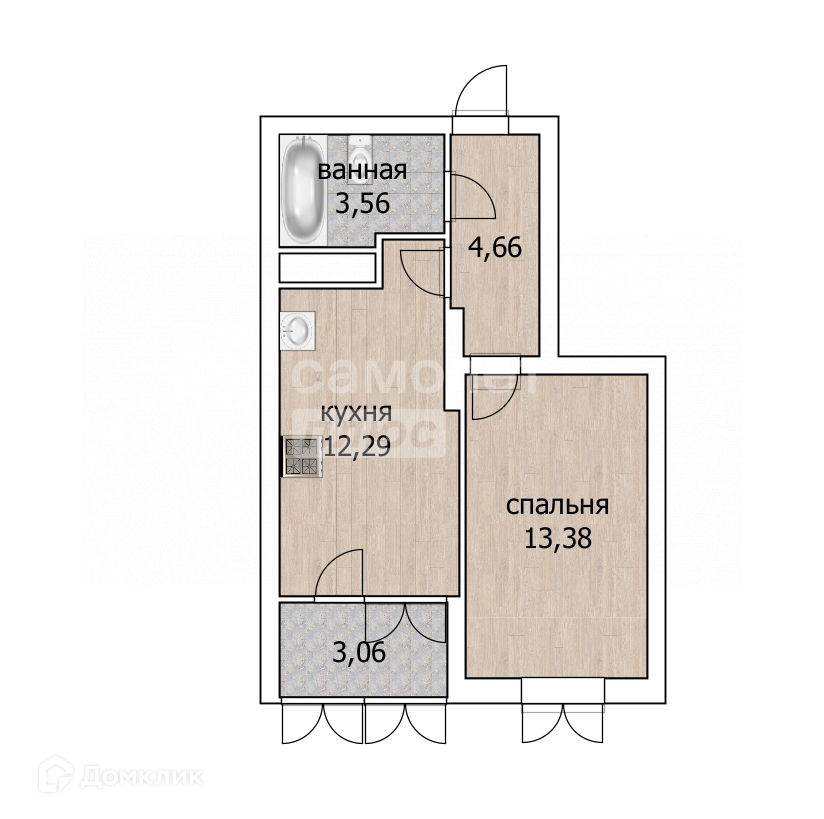 Общая площадь 35.4 м2