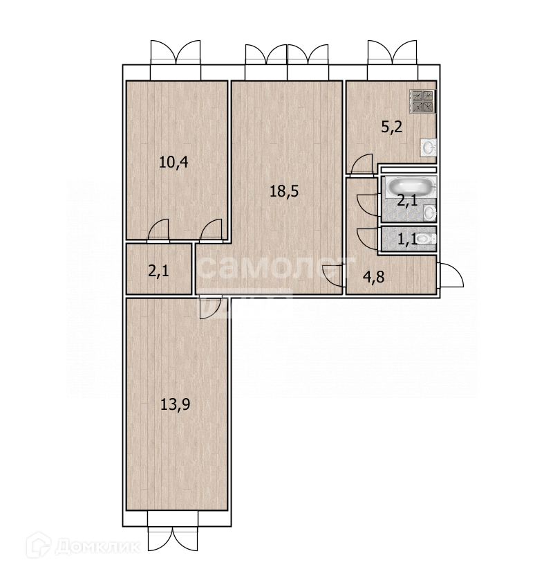 Общая площадь 58.1 м2