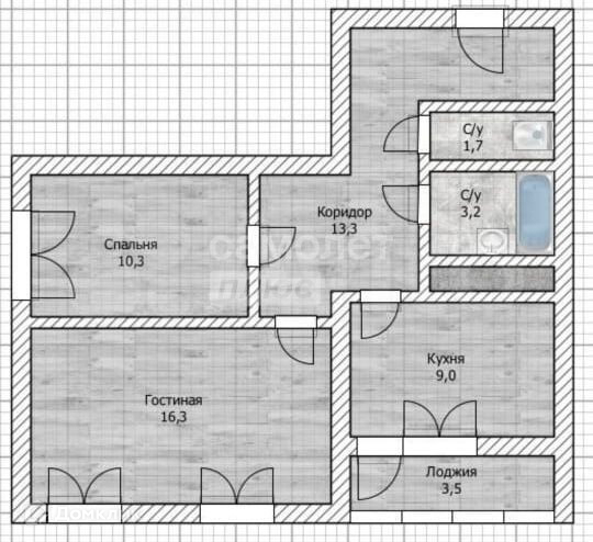 - комнаты 16,3 и 10,3 кв.м.;
