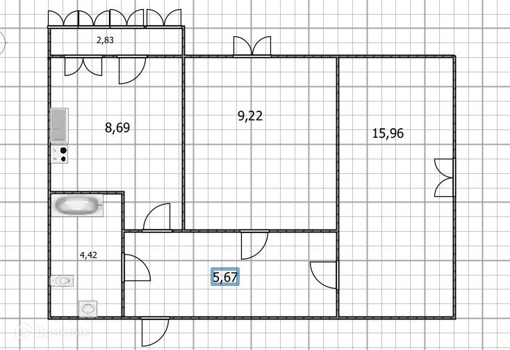 Жилая площадь 25.96 м2