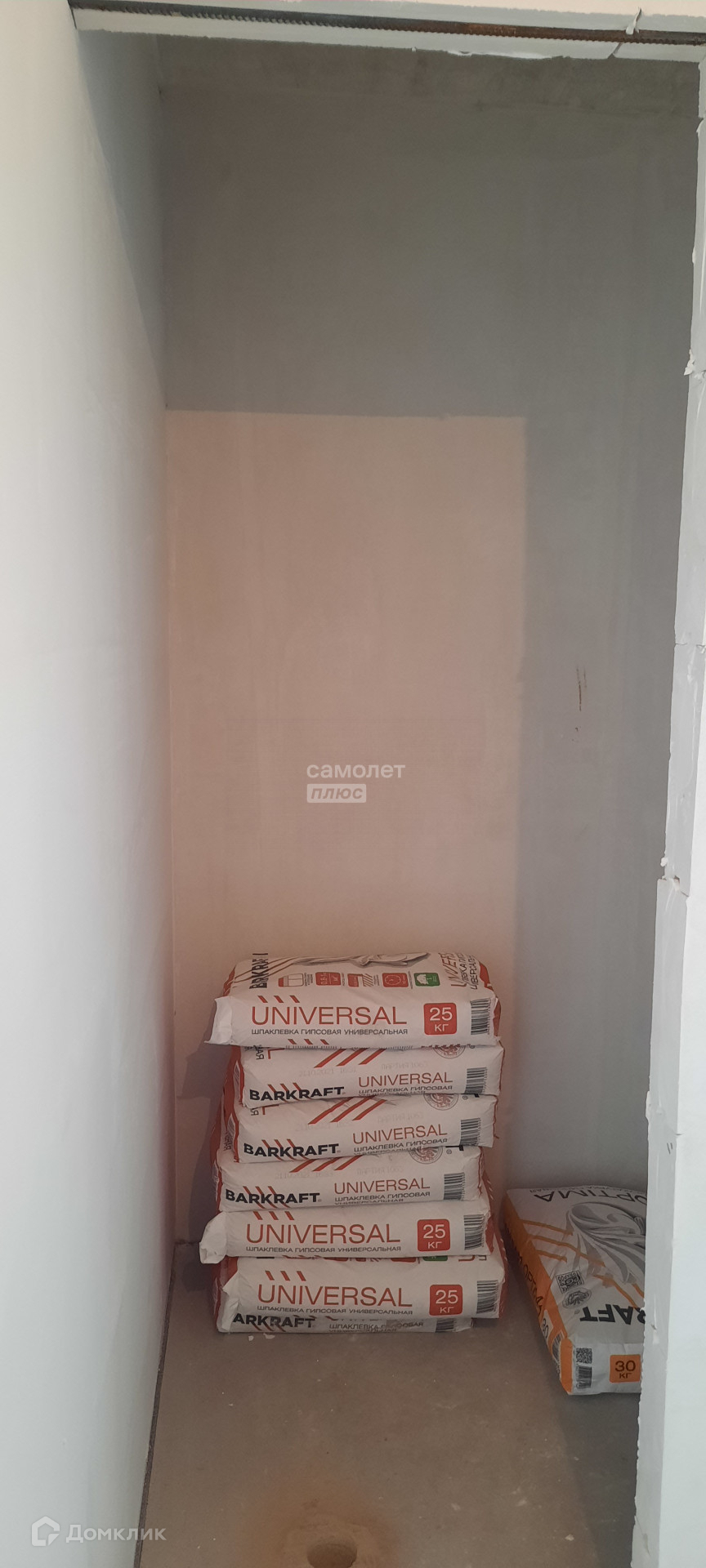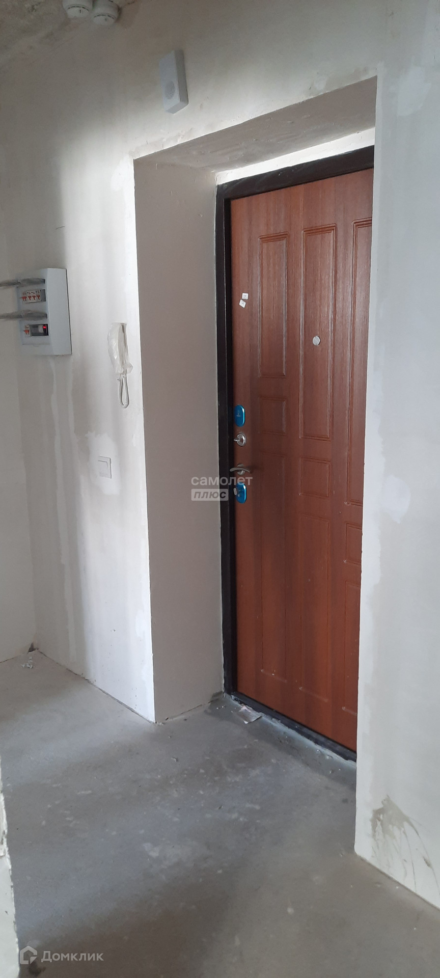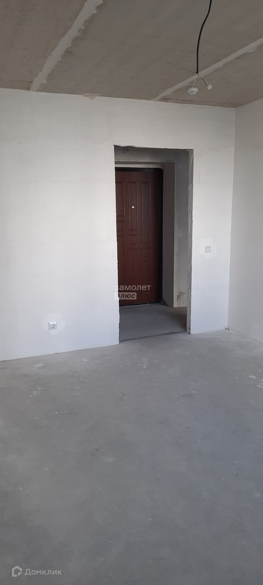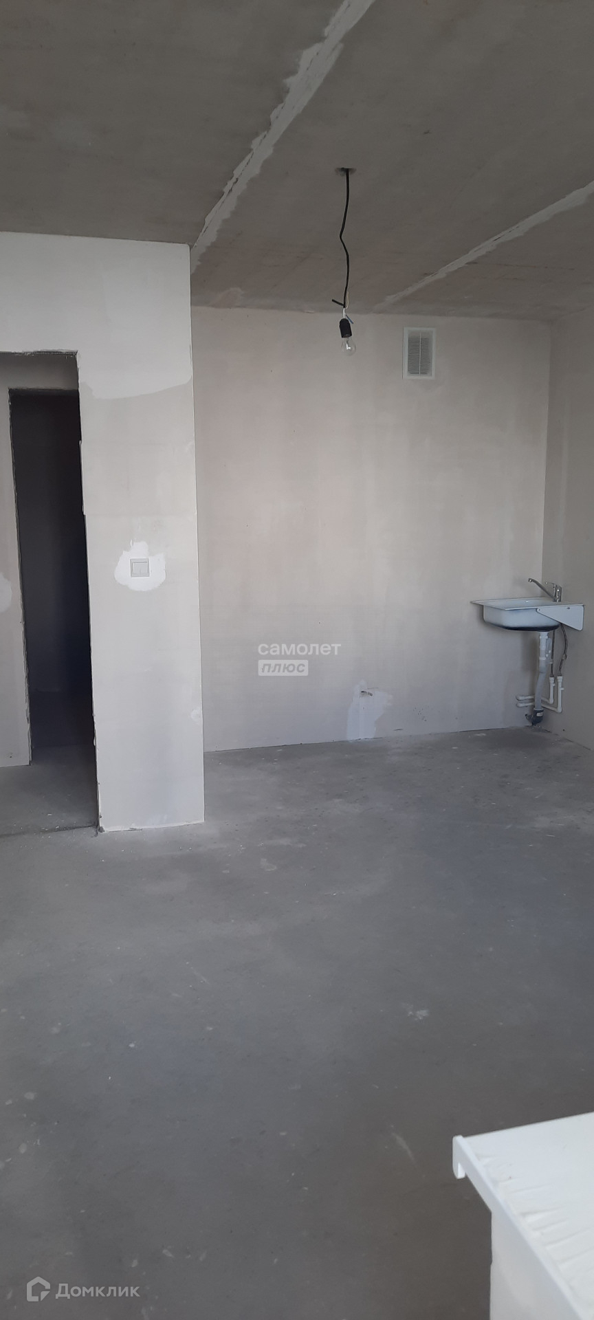 Квартира в предчистовой отделке: стяжка пола, штукатурка стен, радиаторы отопления, счетчики воды и электричества.
