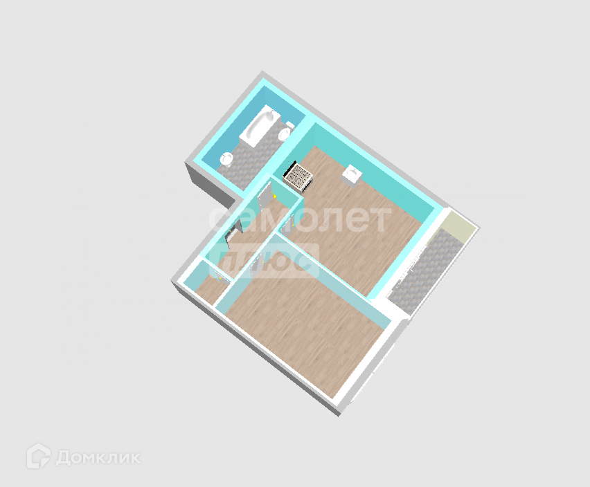 Общая площадь 45.5 м2