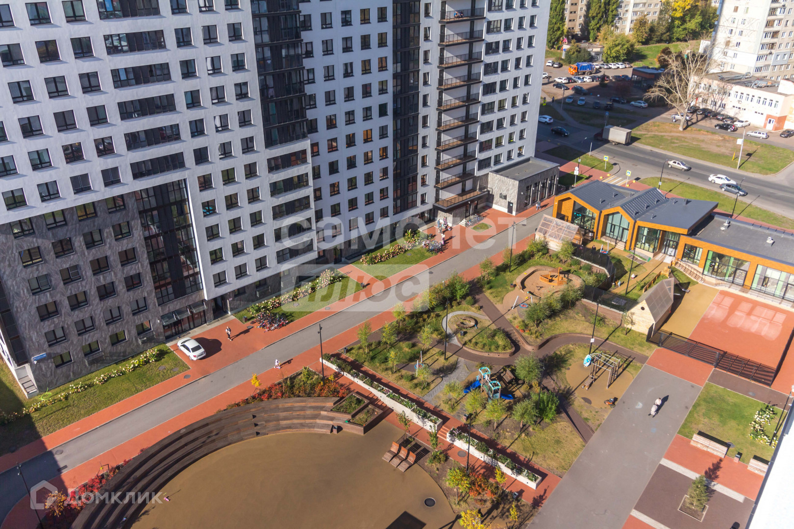игровыми площадками и прогулочную зону.